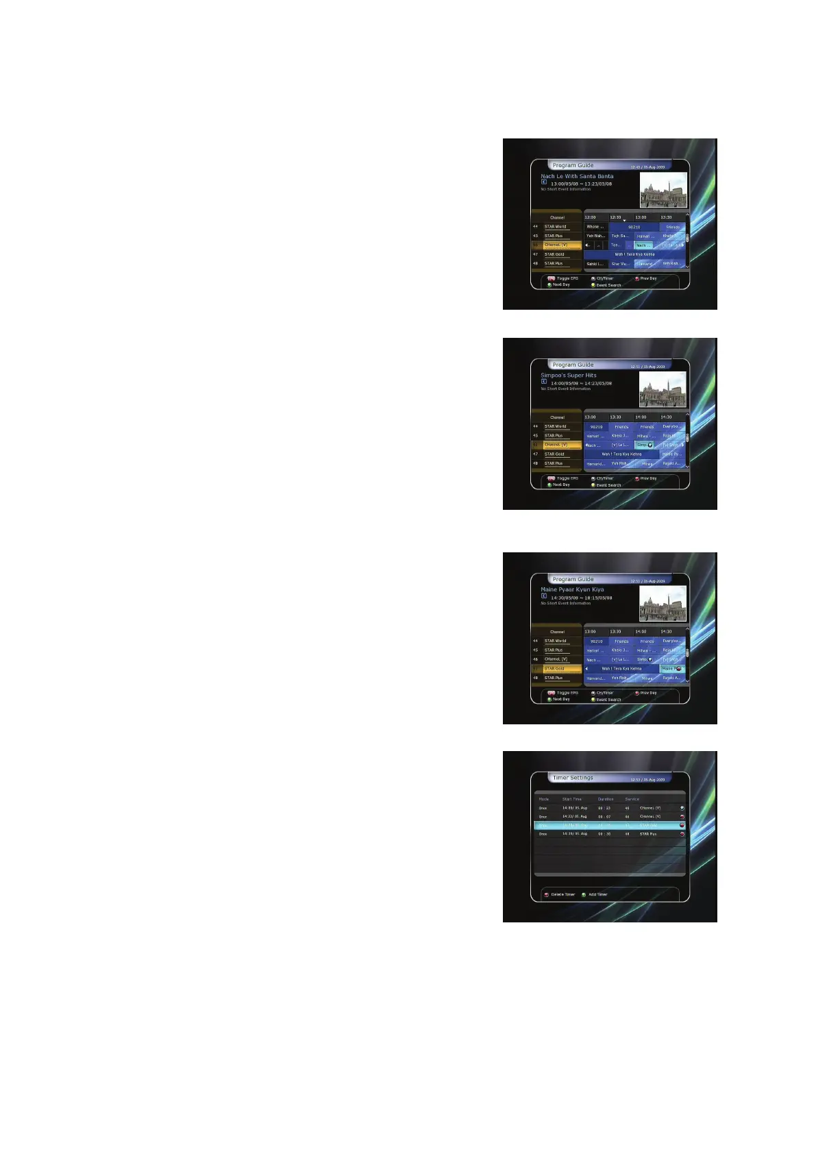 In the EPG menu screen, you can choose the event you wish to