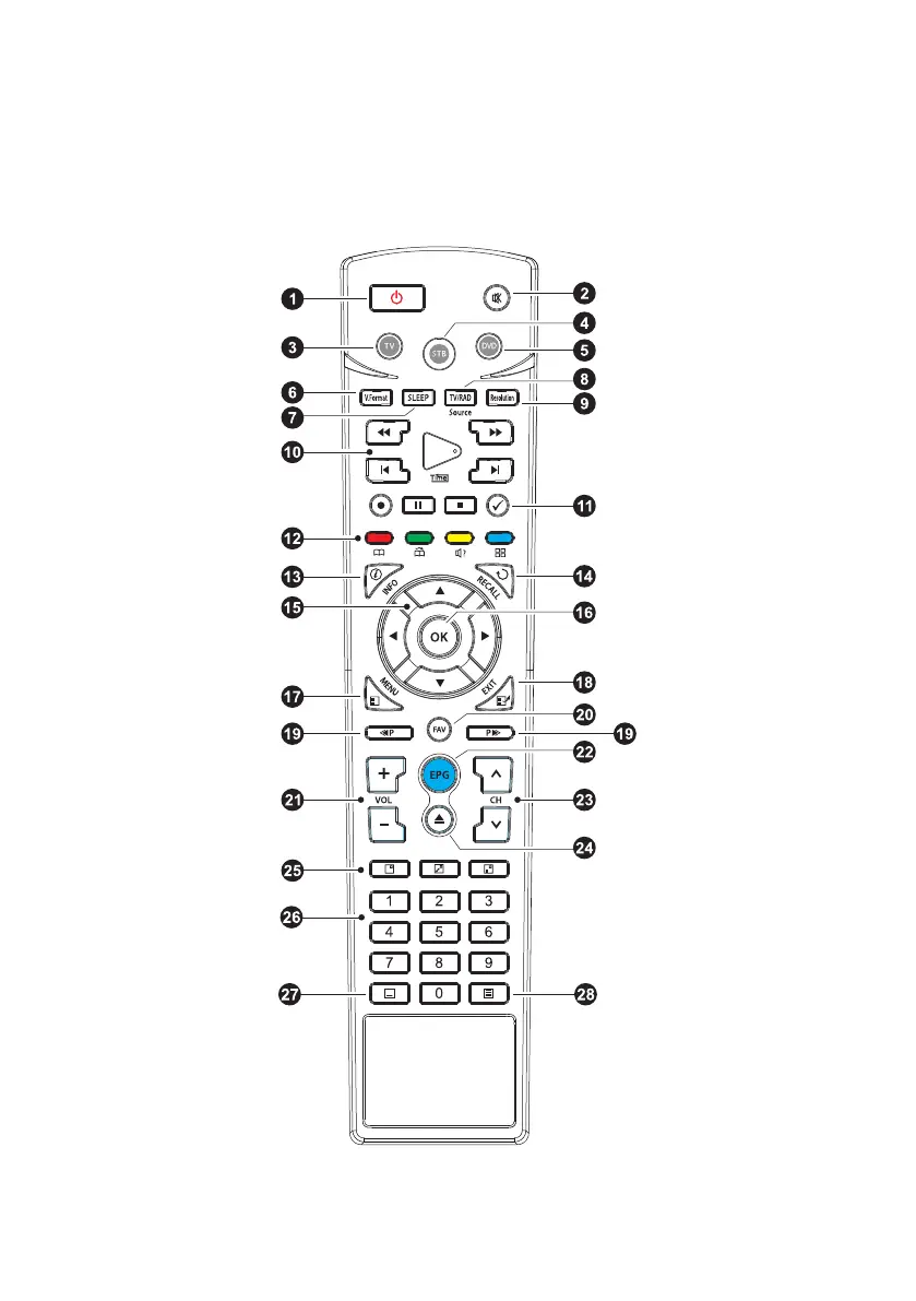 Use the remote control to control the digital TV receiver. Before using, make sure