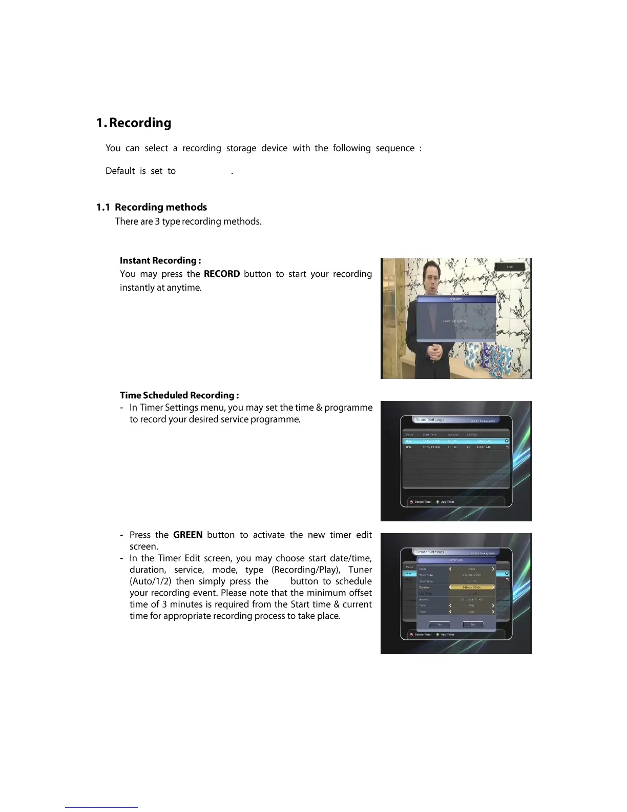(Instant Recording / Time Scheduled Recording / Event Scheduled Recording).