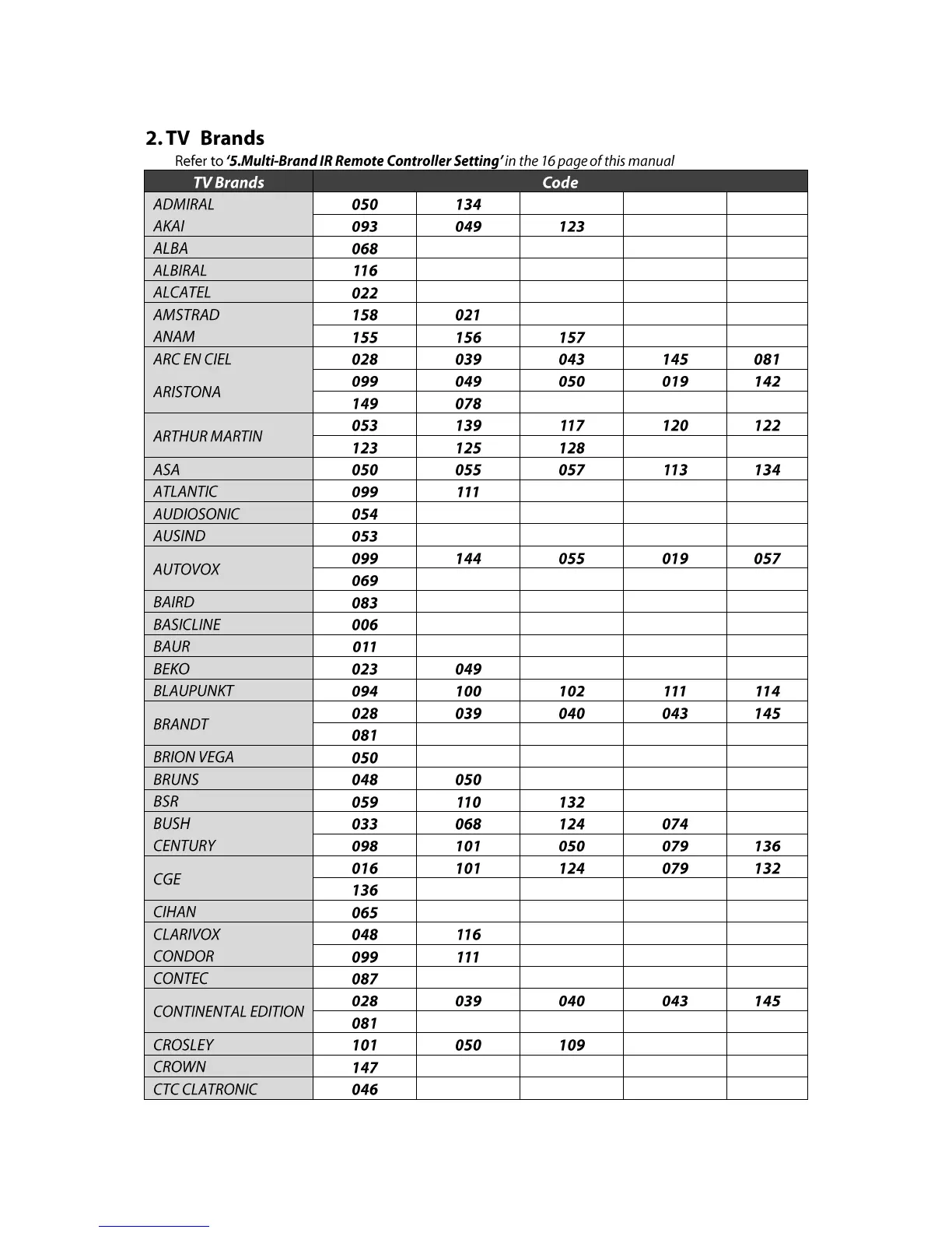 Icecrypt STC6000HD - Remote Control Brand Codes