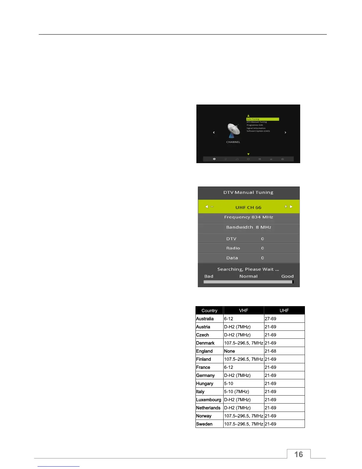 Channel Frequency range by country: