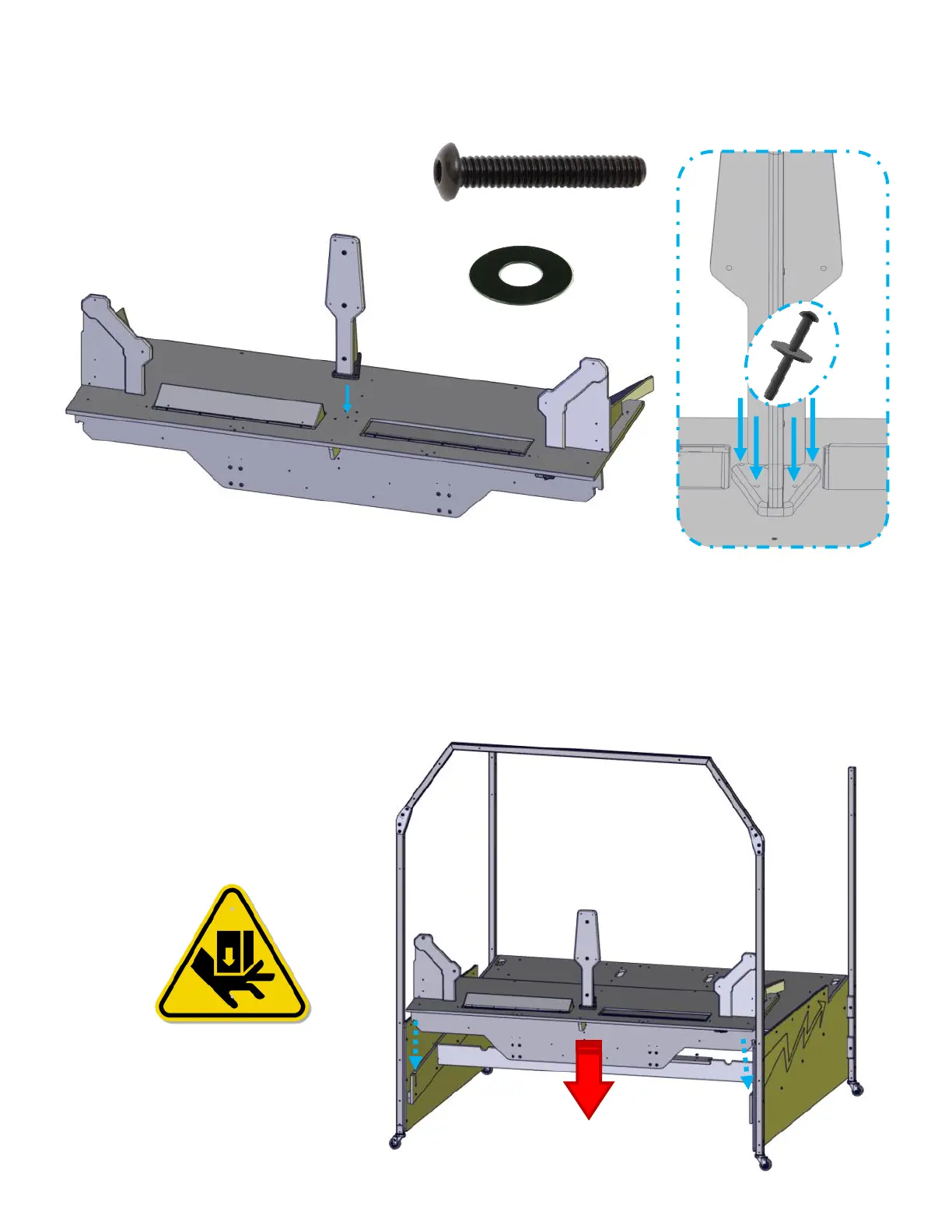 Slide the 2E ball gate assembly into the front slot of the base cabinet. Watch your fingers!
