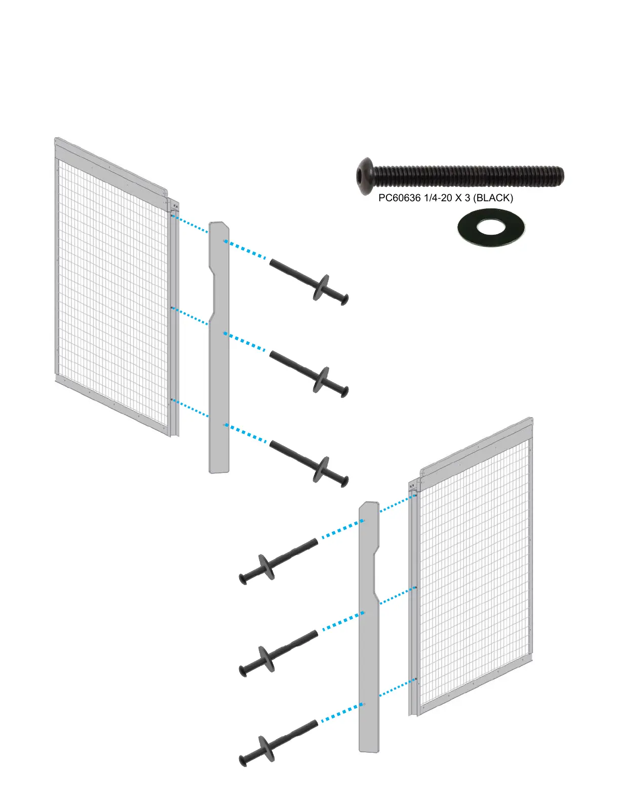 Attach a 3J to each cage (2G & 2H) front using three PC60636 black Allen bolts and AA6212 black