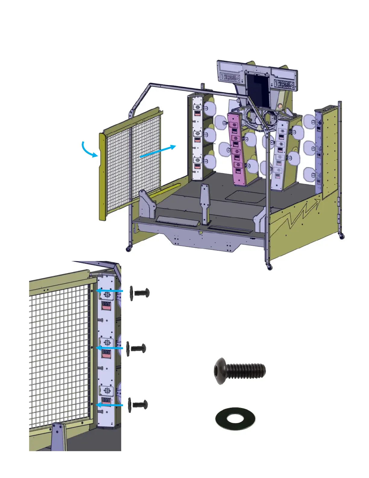 Position the 2G (left) cage assemble on the left side and against the 2C outer tower.
