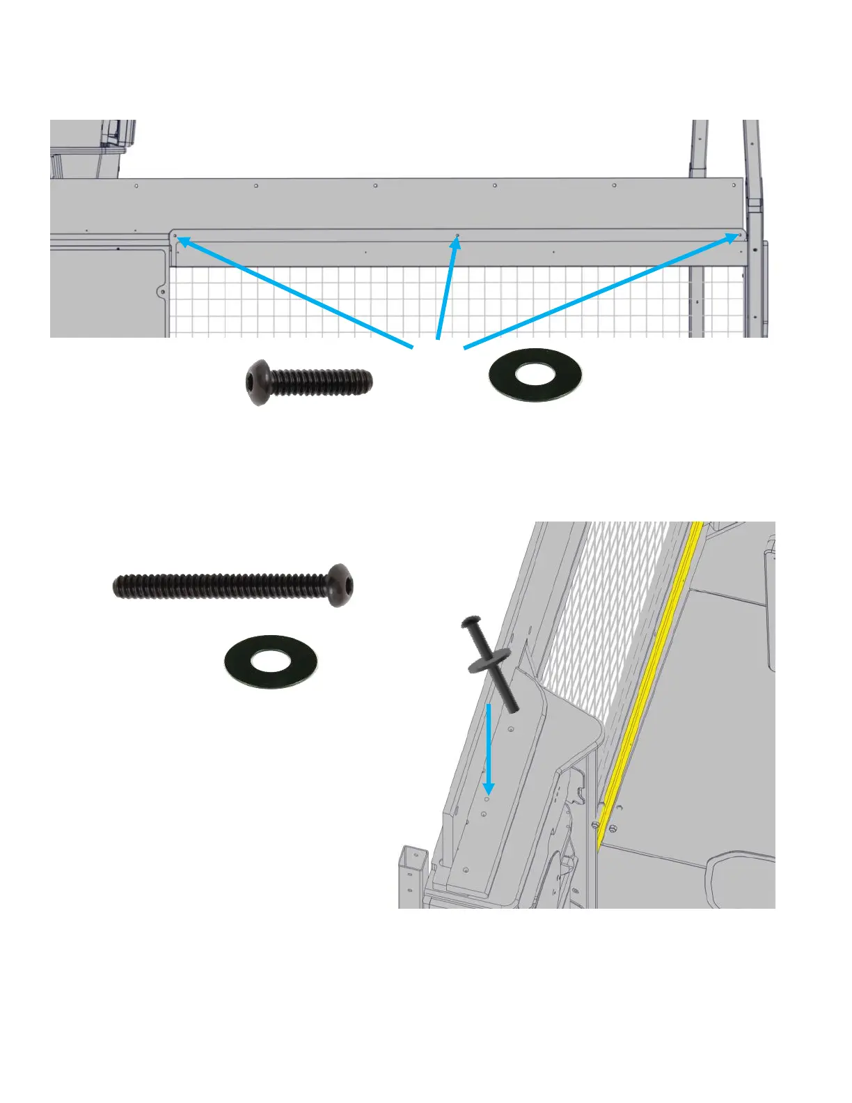 Secure the cage assembly to the back tower with one AA6125 black bolt and AA6212 black washer.