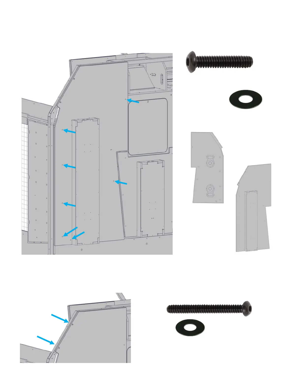From inside the game, secure the left back panel to the upper arch using two AA6125 black Allen