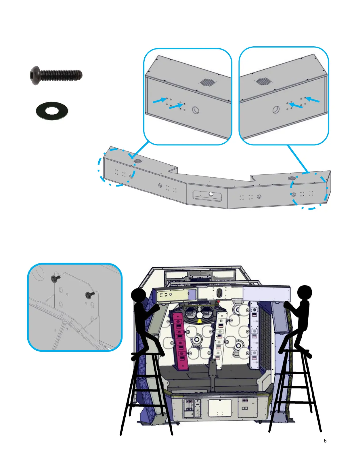Partly install two AA6281 Allen bolts and AA6212 washers on each side on the arch assembly.