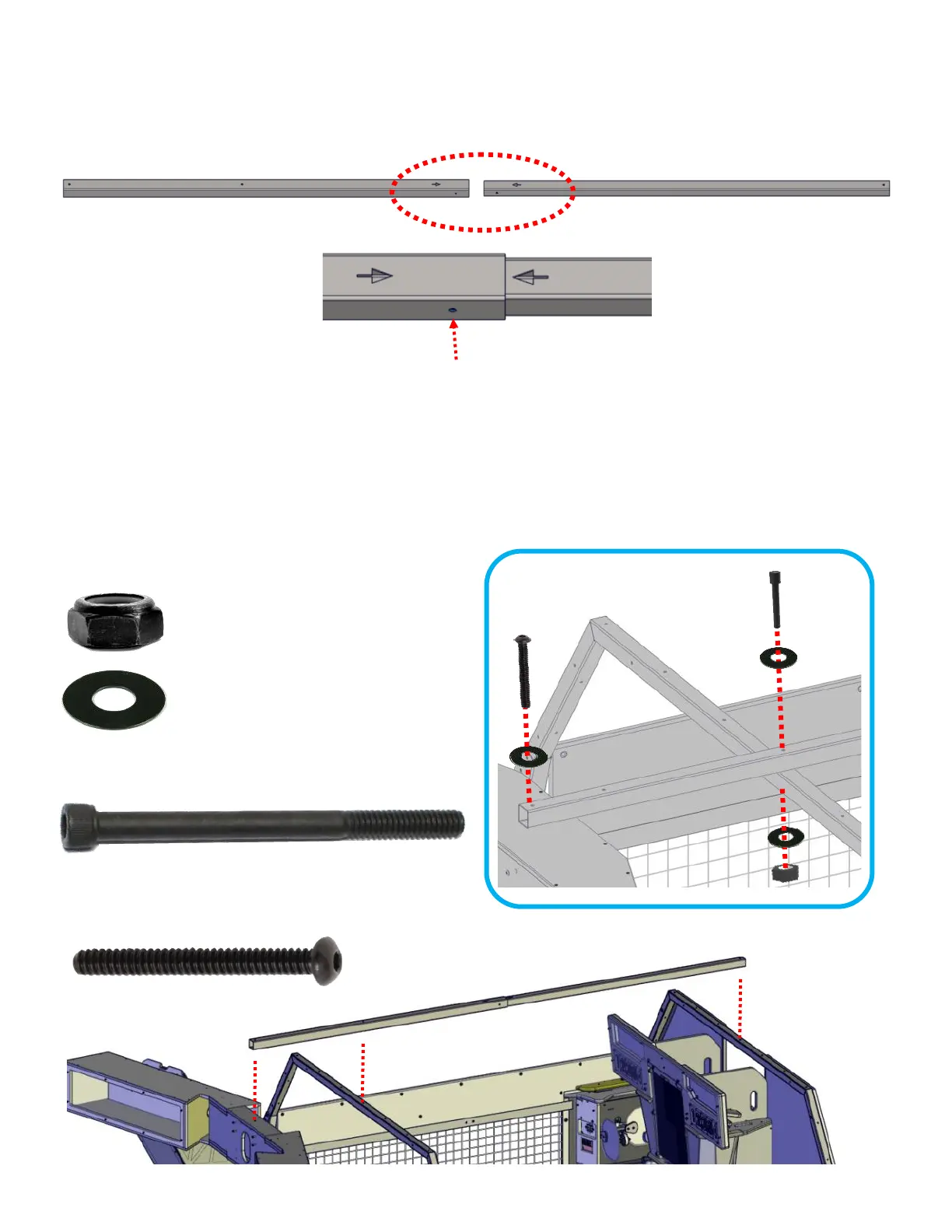 Use one AA6125 bolt and AA6212 washer to attach the2I and 2J assembly support to the marquee.