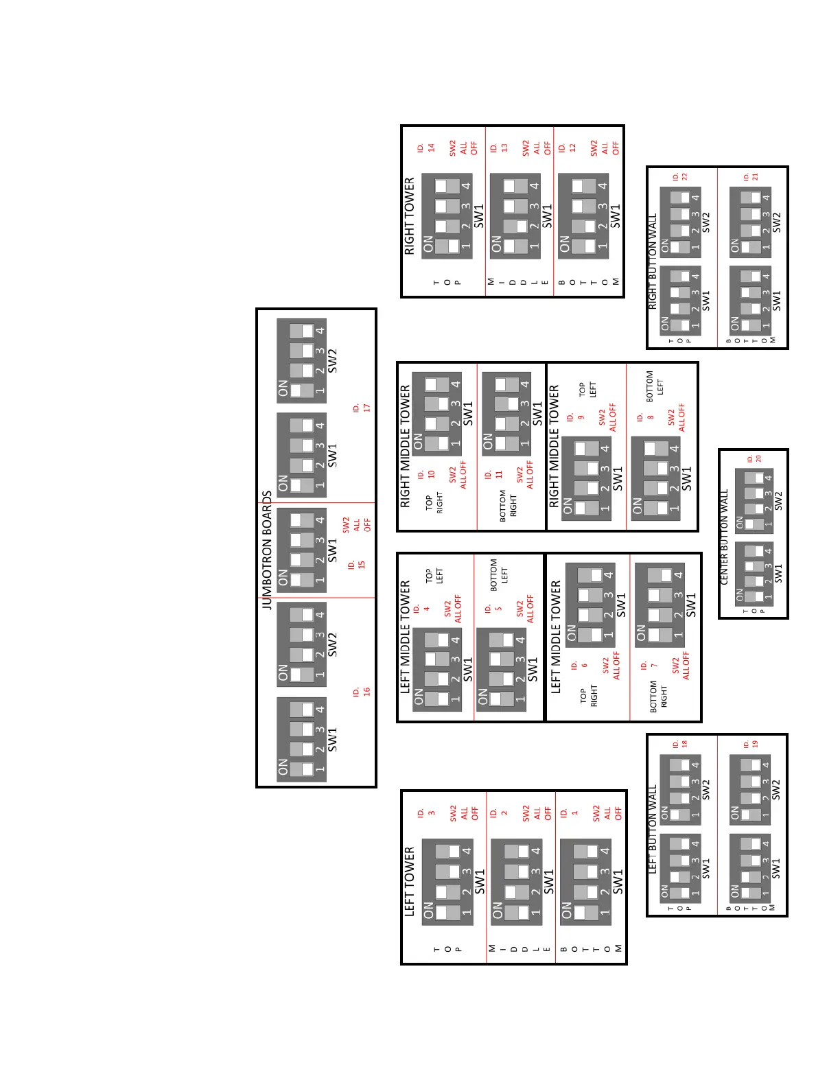 Each board has two sets of dipswitches. These dipswitches determine the position and function. When installing any replacem
