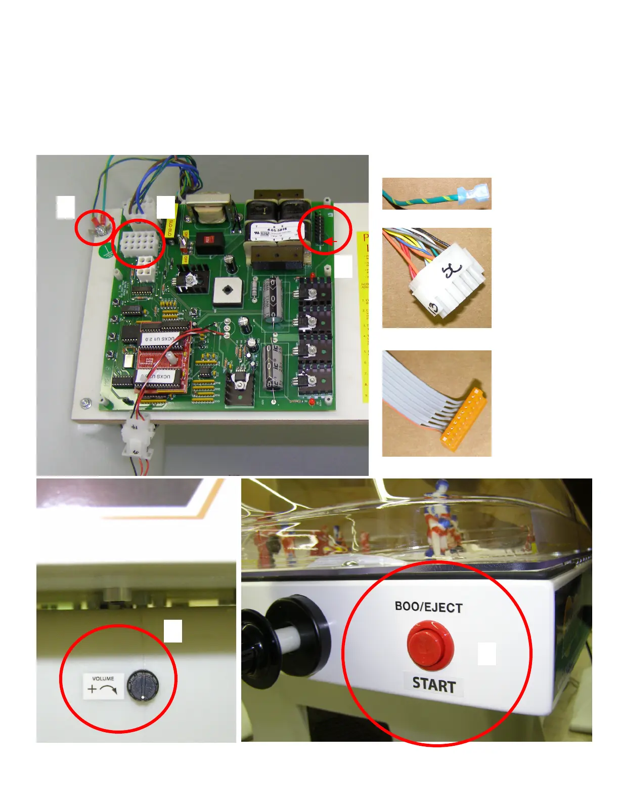 volume control is located on the side of the cabinet’s base. See circle 4. To start a game, press the Boo/Eject