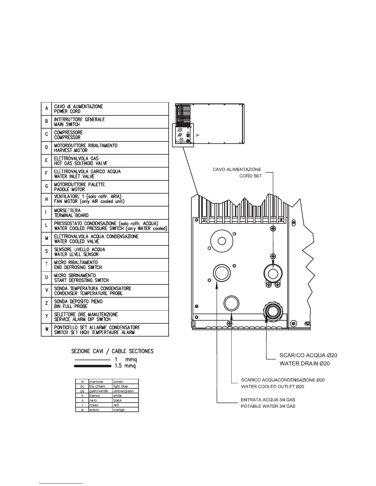 Icematic E 21 - Component and Cable Identification; Electrical Component List; Cable Section and Color Codes