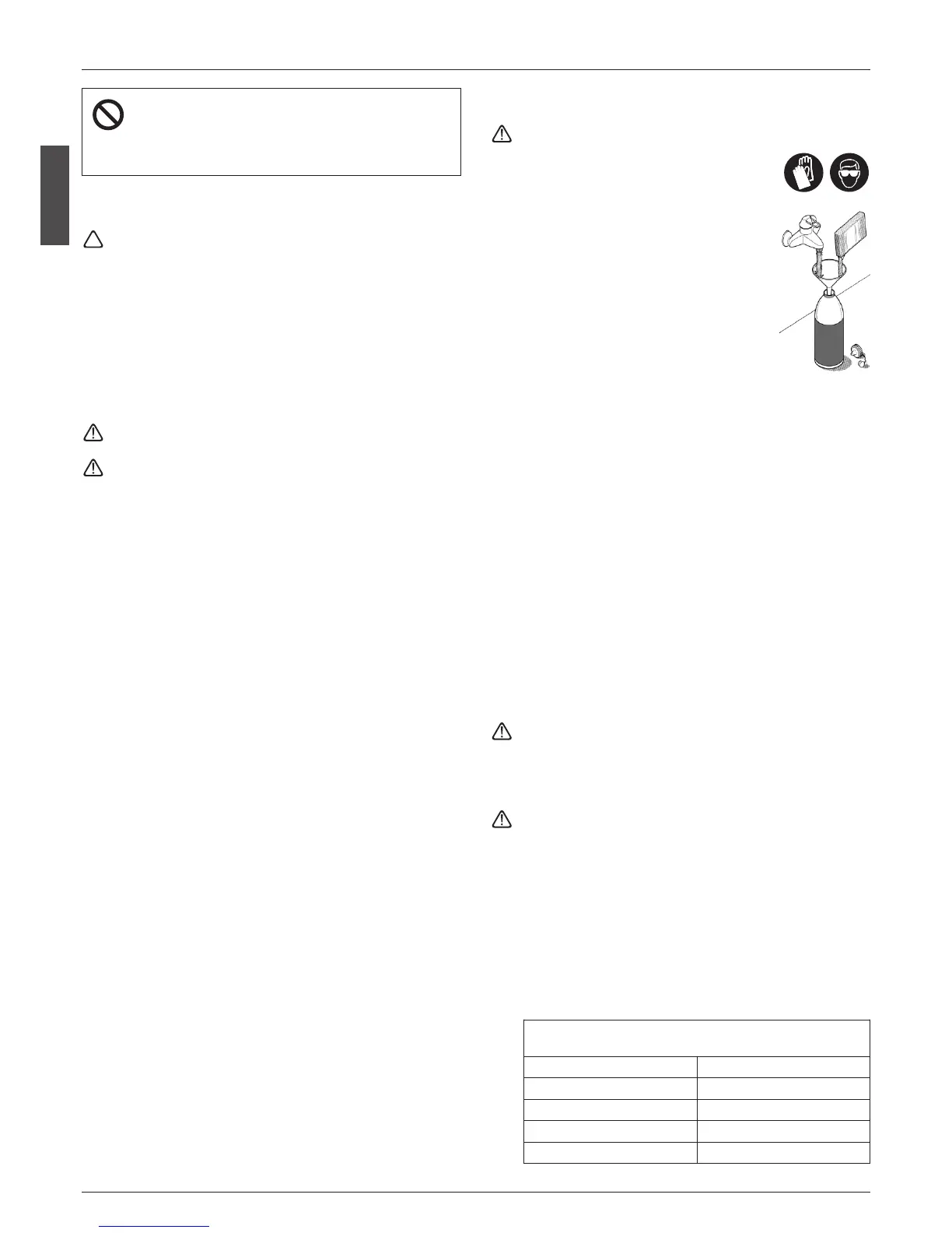 see the table). Wear protective gloves and