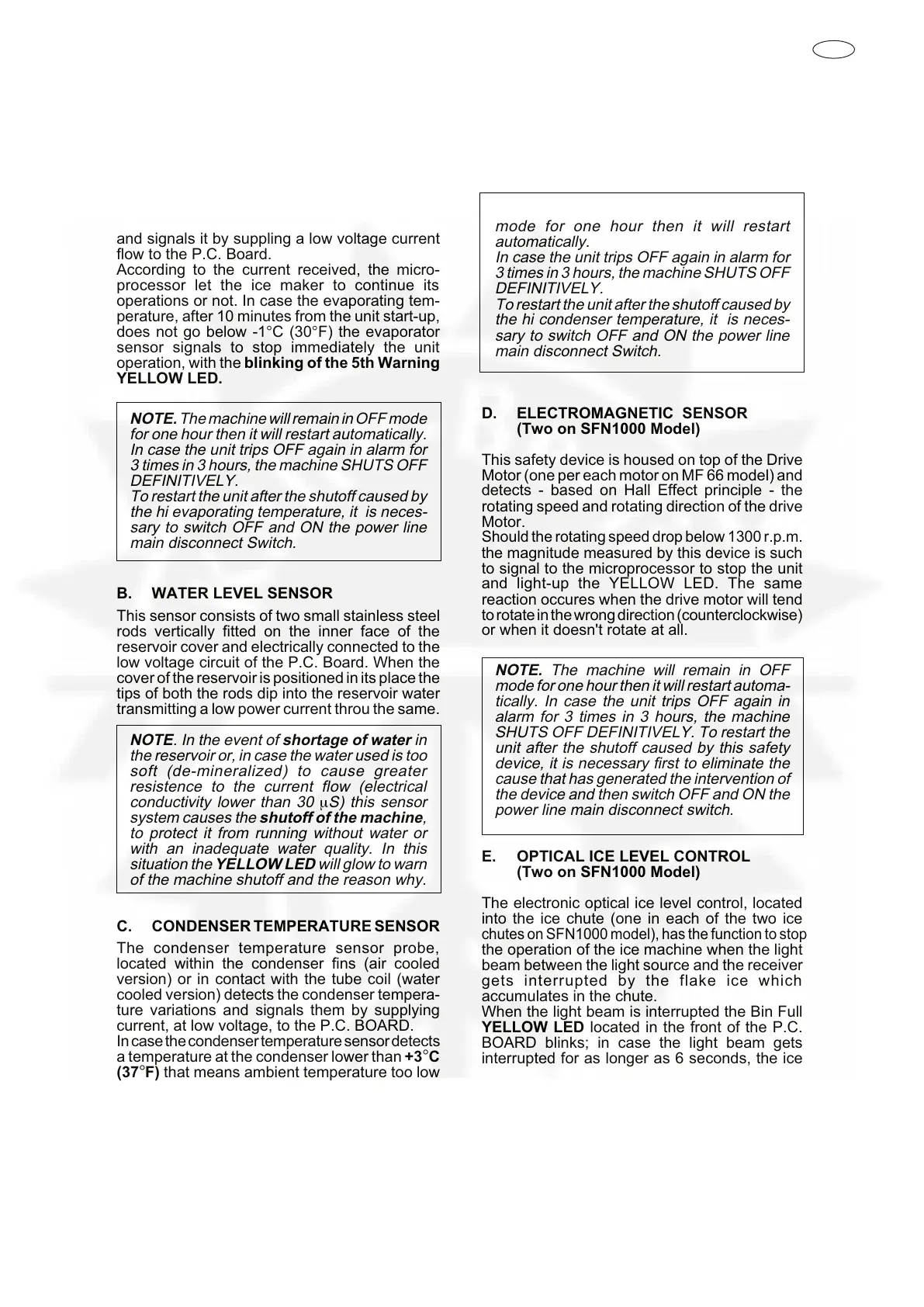 E. OPTICAL ICE LEVEL CONTROL
