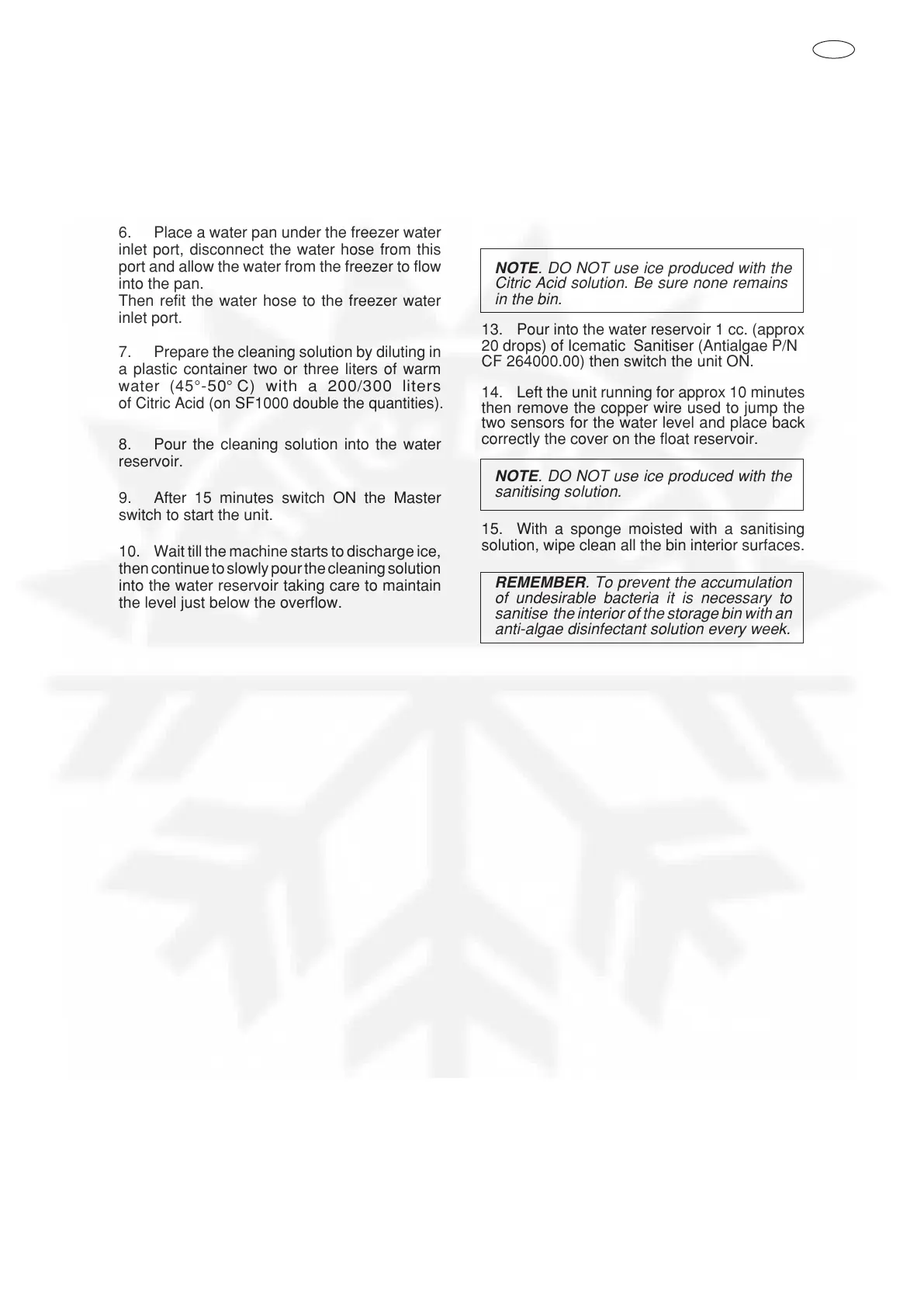 20 drops) of Icematic Sanitiser (Antialgae P/N