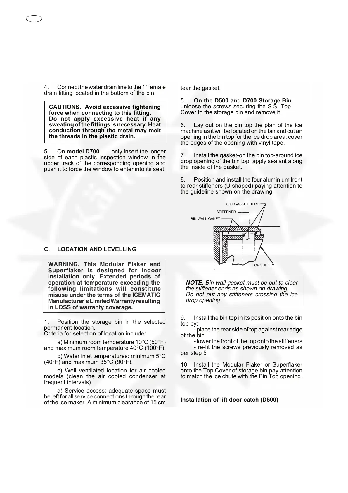 Icematic F 125 C - Location and Levelling