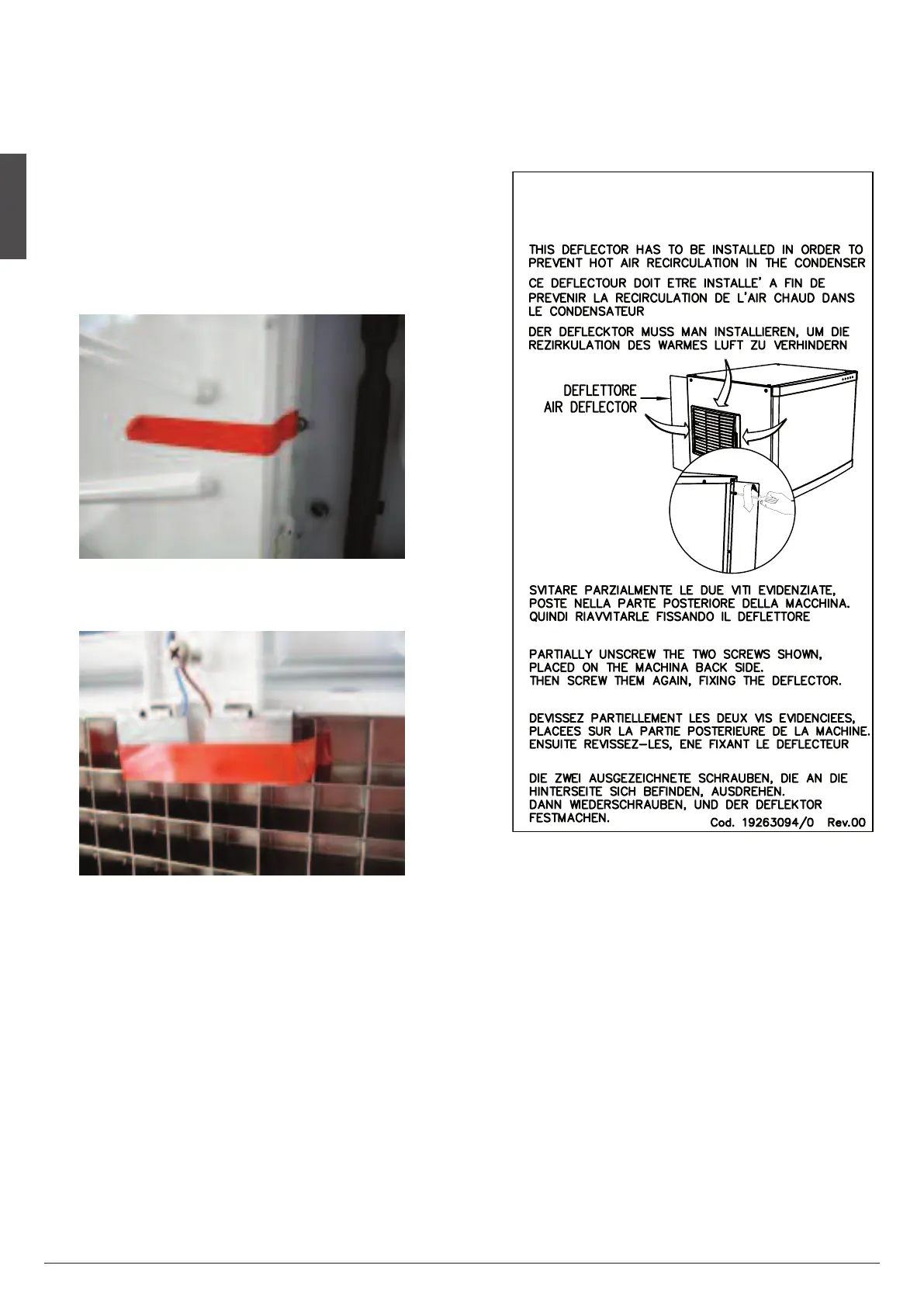 • Remove first the ice deflector/evaporator cover then the