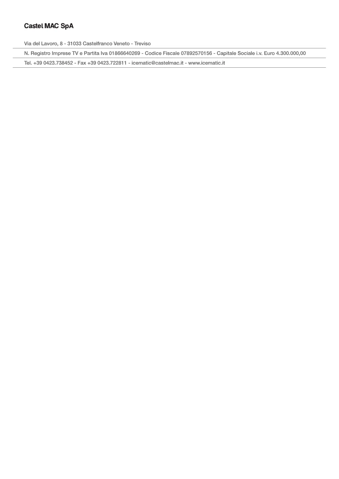 Castel Mac SpA si riserva il diritto di apportare modifiche sia tecniche che estetiche senza preavviso. Castel Mac reserves the right to change models and specifications without prior notice.