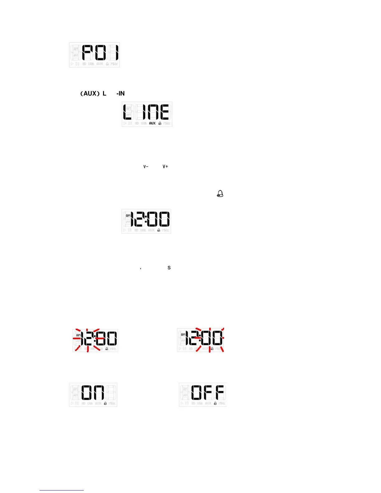 in the alarm mode, display alarm time and alarm icon “ ” .