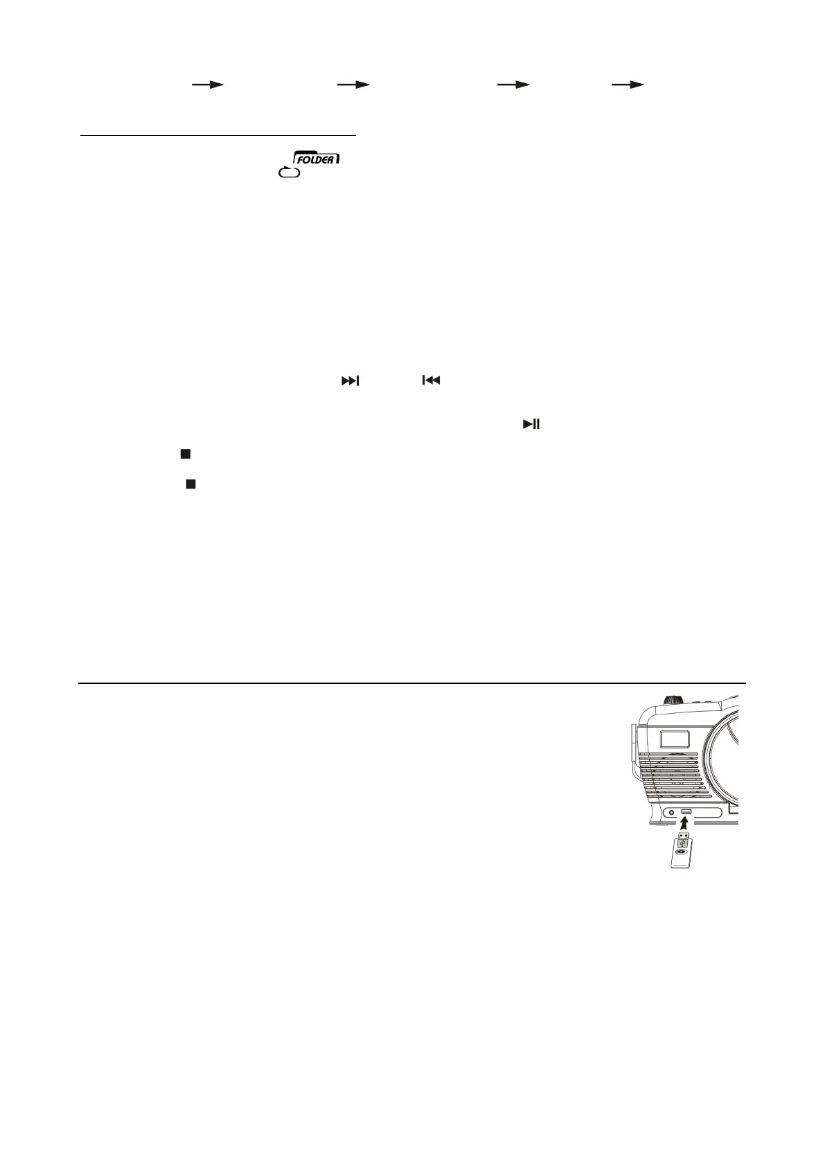 For MP3 disc / file, press the “ Folder up “ button (9) to select the 1