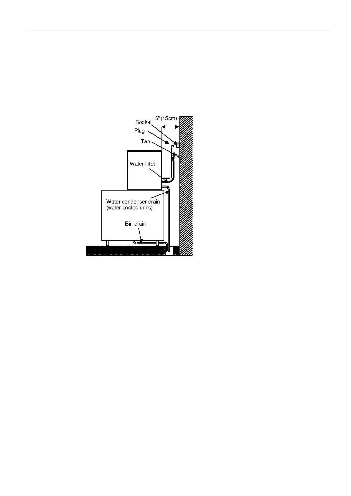 The location must allow enough clearance for water drain and electrical connections in the rear