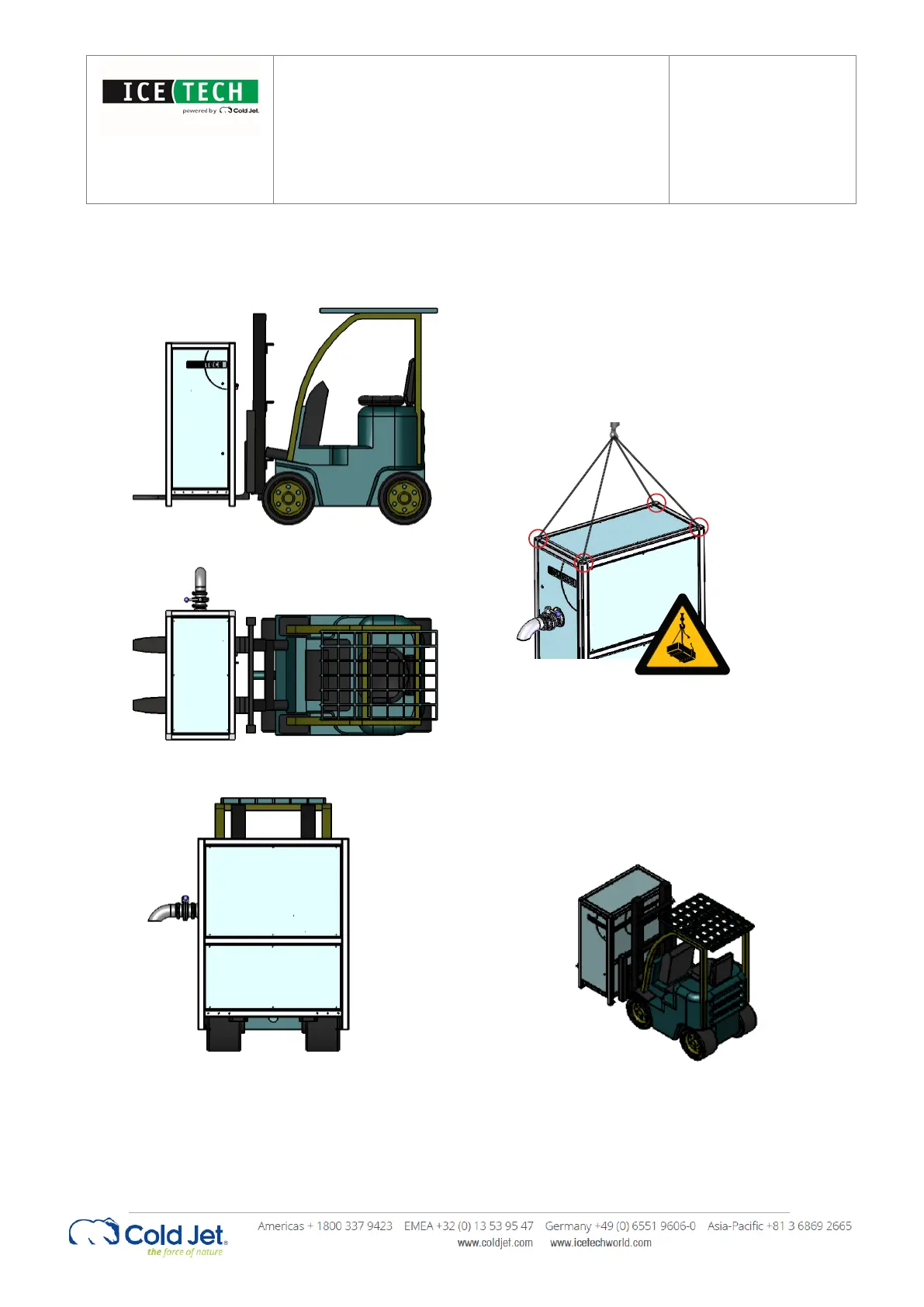 Min. load capacity of forklift truck: 1150kg/2535 lbs