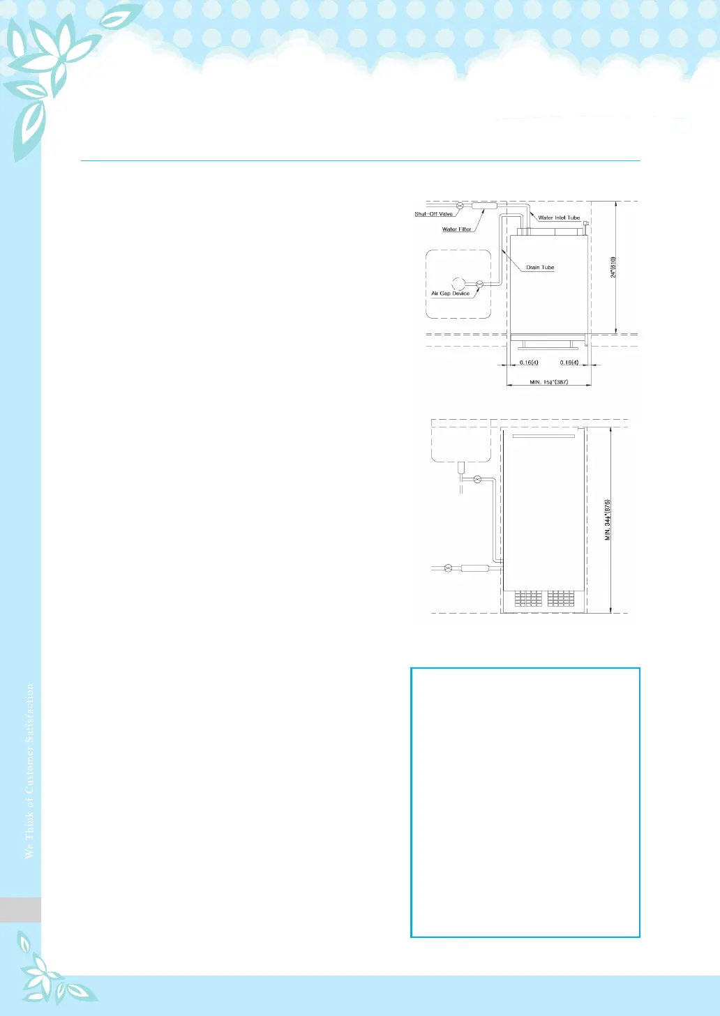 11) Connect the drain tube (with a diameter of 5/8“)