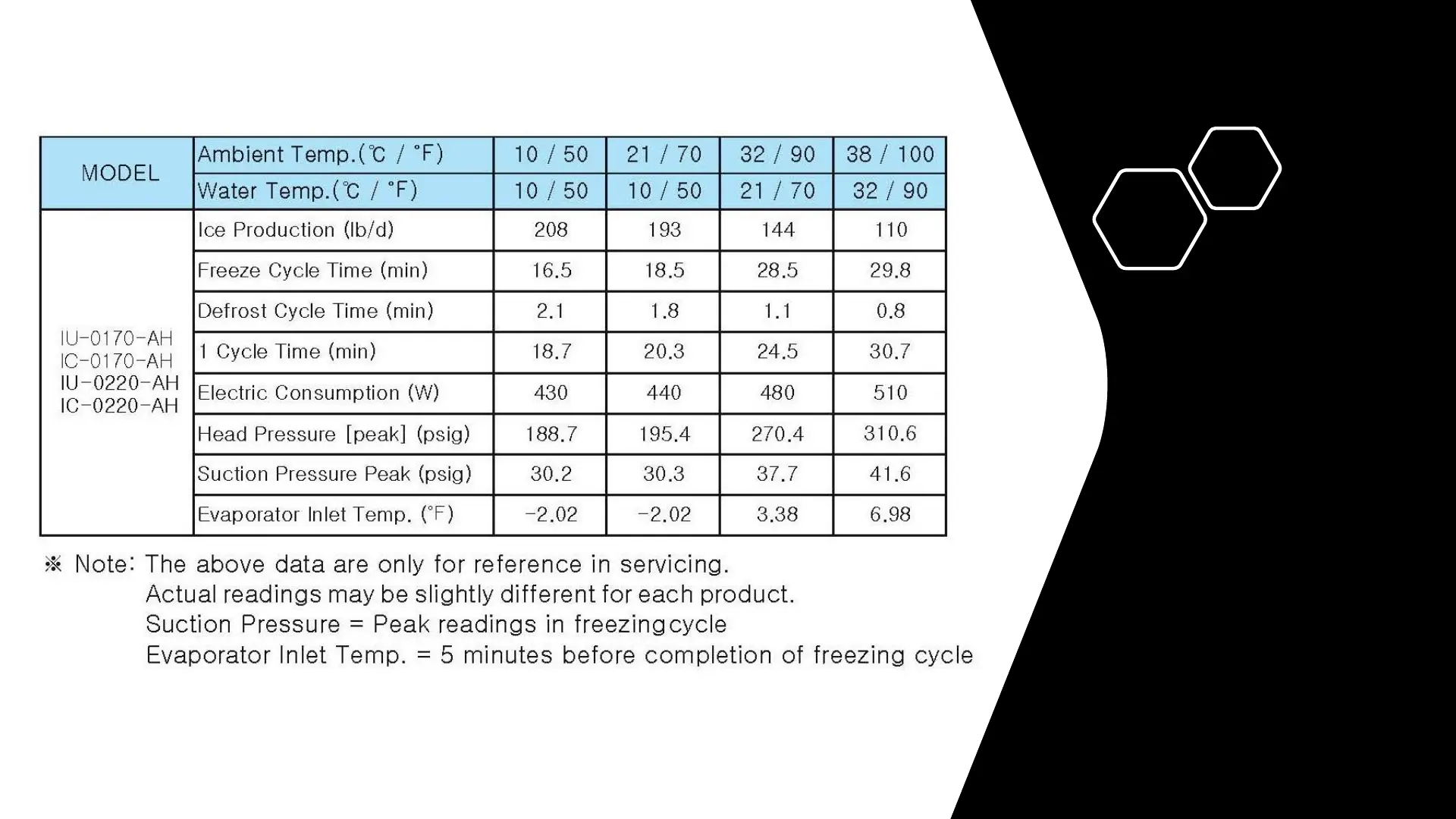icetro IC Series - Performance Data and Cycle Times
