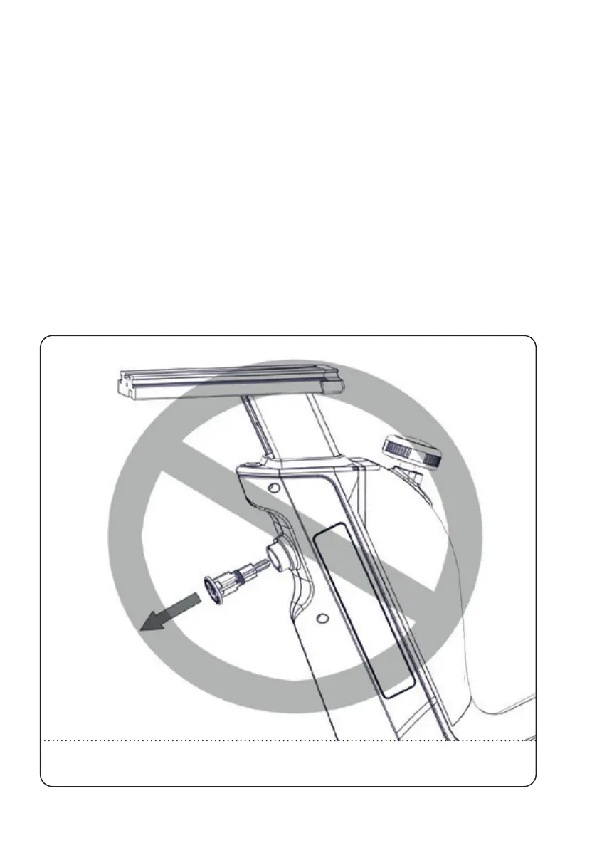 THE VERTICAL HANDLEBAR STEM OF THE INDOOR CYCLE IS SPRING LOADED AND WILL EXTEND QUICKLY UNLESS THE