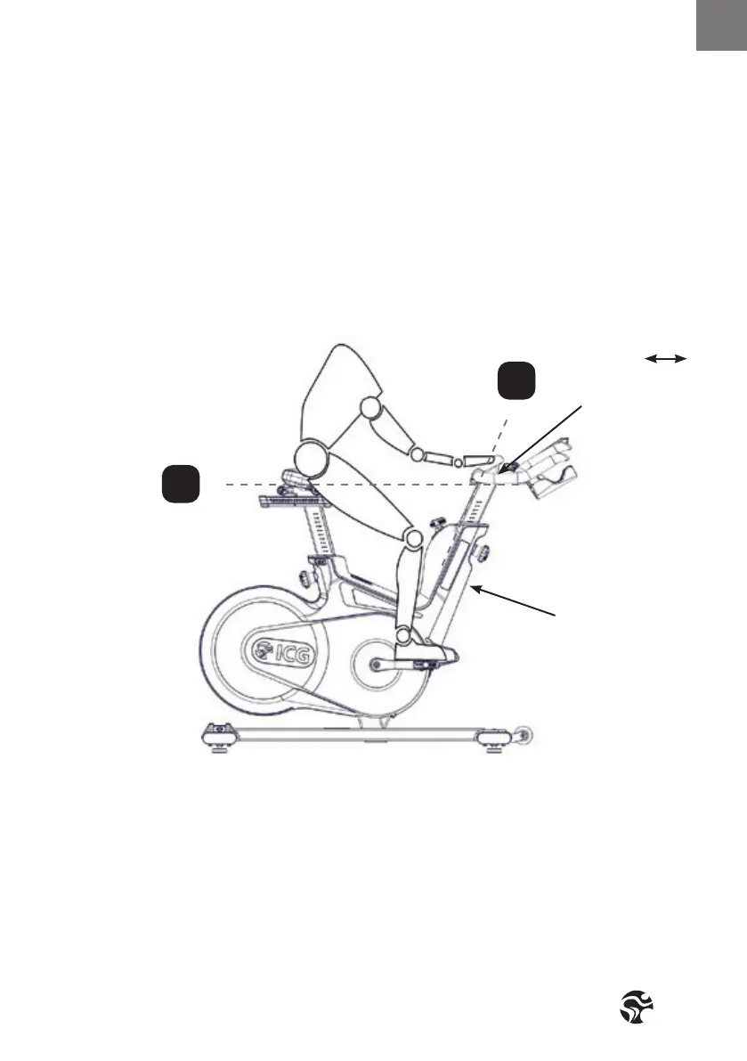 dotted vertical line B in the drawing below). If your knees touch the handlebars or if you