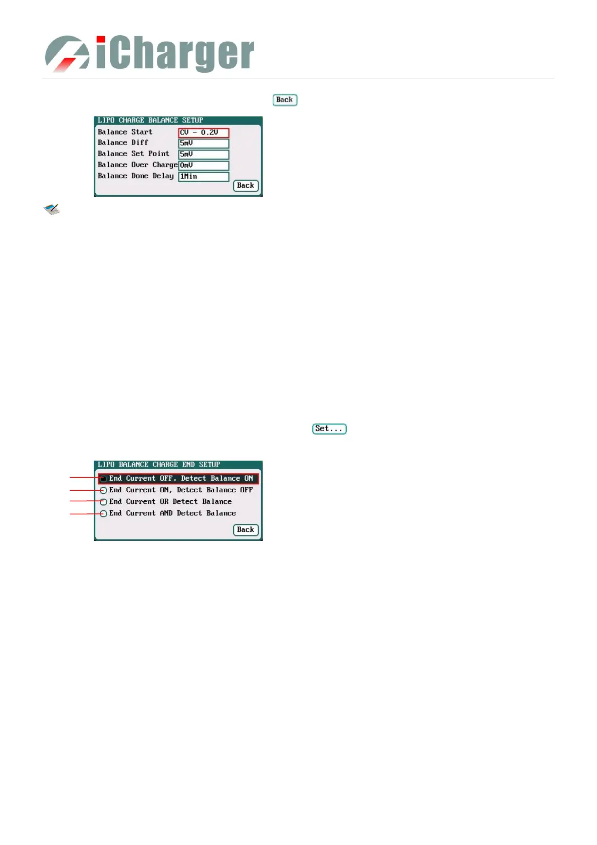 Switch to Balance charge mode on Chg Mode, and click “ ” behind Chg End Current to enter CHARGE