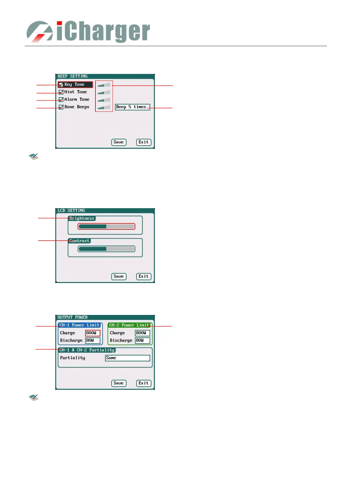 Select SYSTEM MENU→Charger Setup→LCD Screen to enter the setup interface.