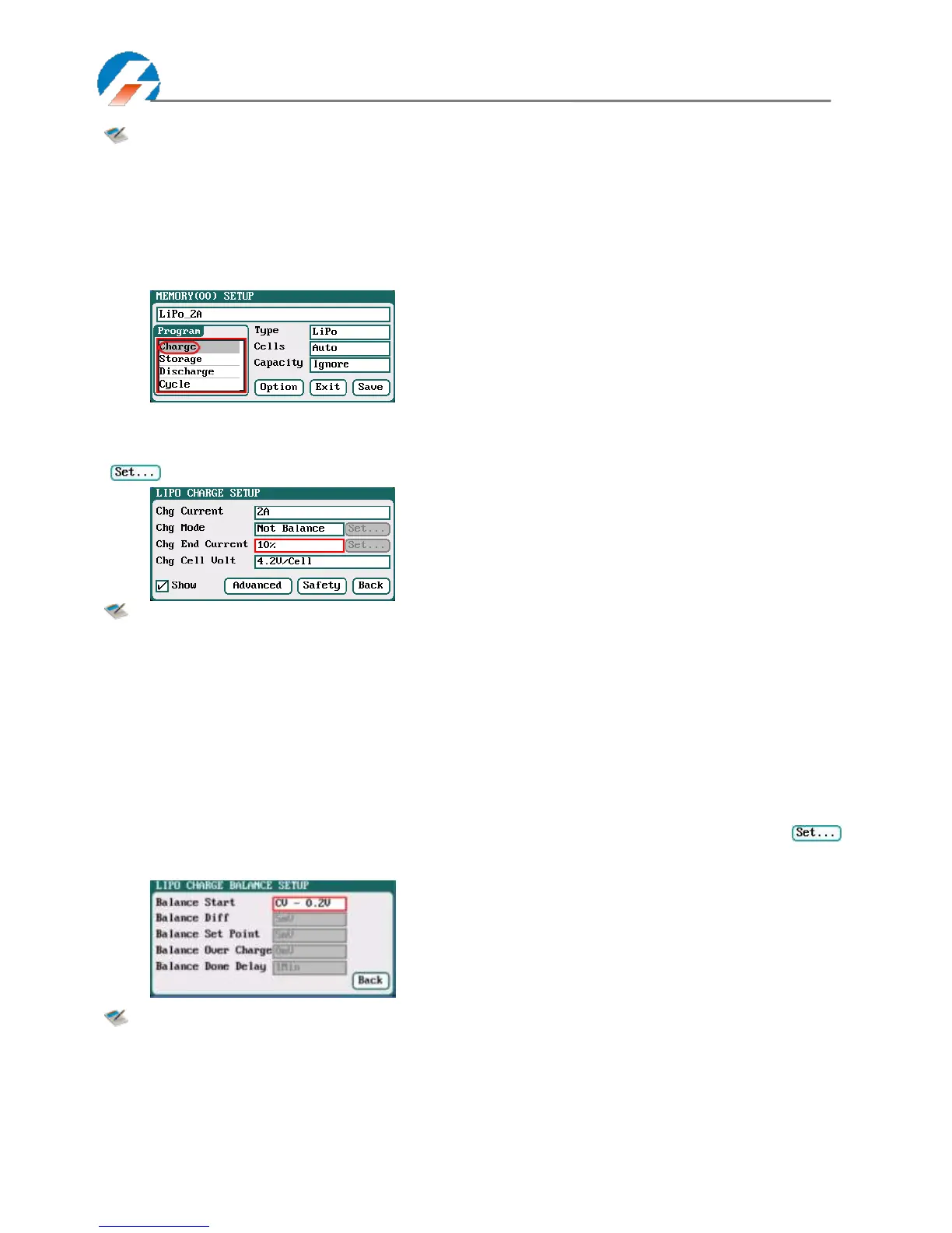 Note: Note: On Balance mode, the charger will monitor the voltage of individual cells to control it