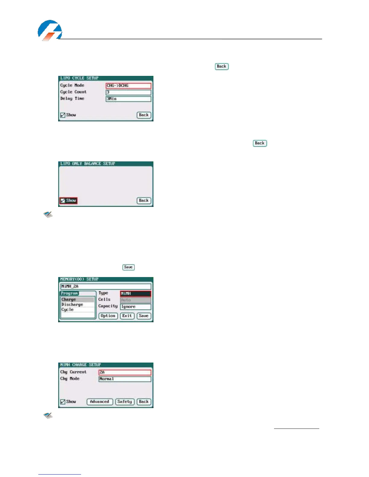 As shown in above picture, the program of NiMH, NiCd has the following modes: Charge, Discharge and Cycle.