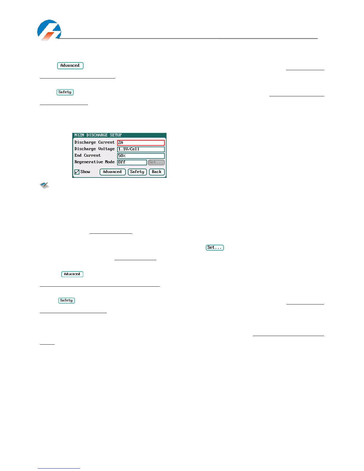 Click“ ”to enter DISCHARGE SAFETY SETUP interface, see details about setting on Page19 LiPo/LiIo/LiFe