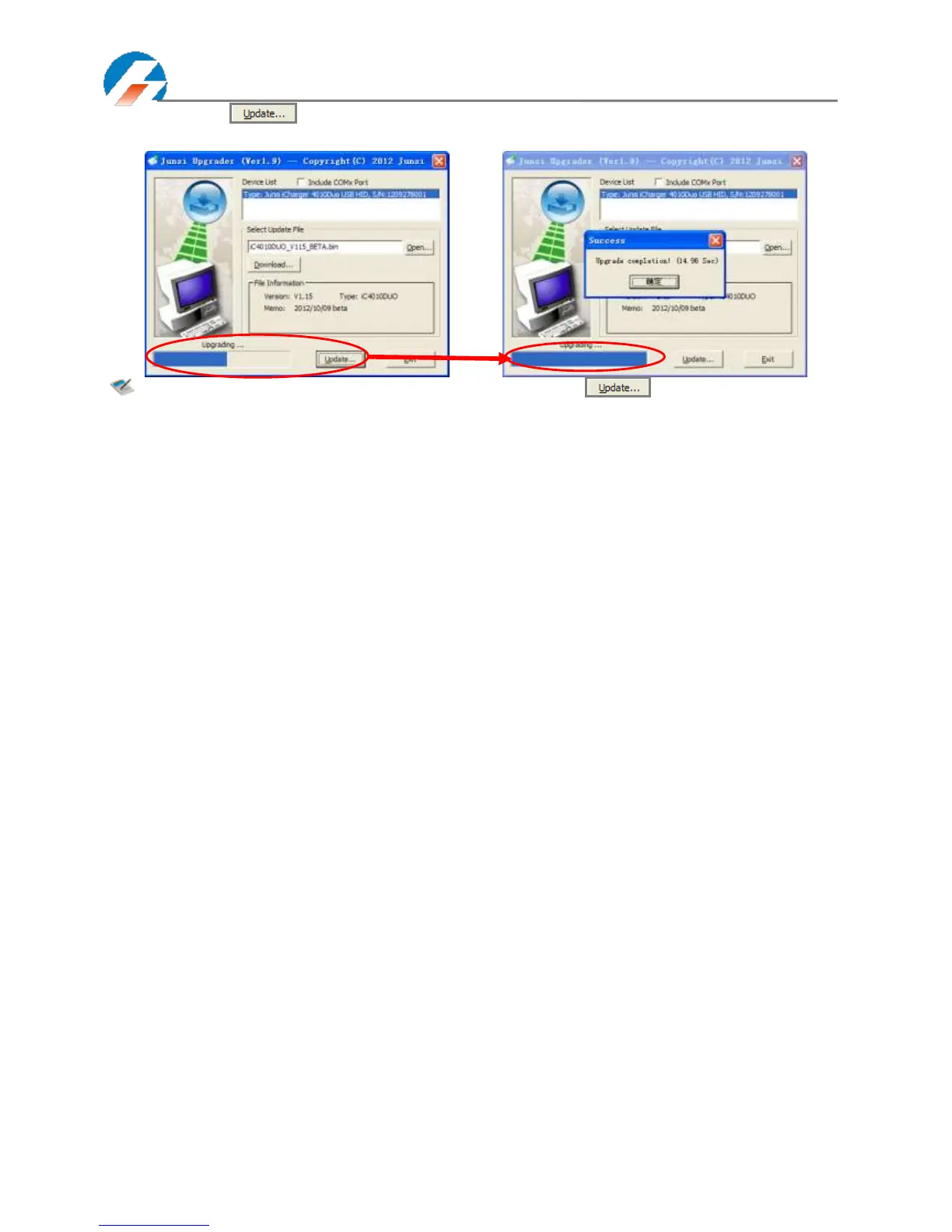 ⑤ Click the iron " " on the lower right corner, then the upgrade progress bar will appear on the lower left