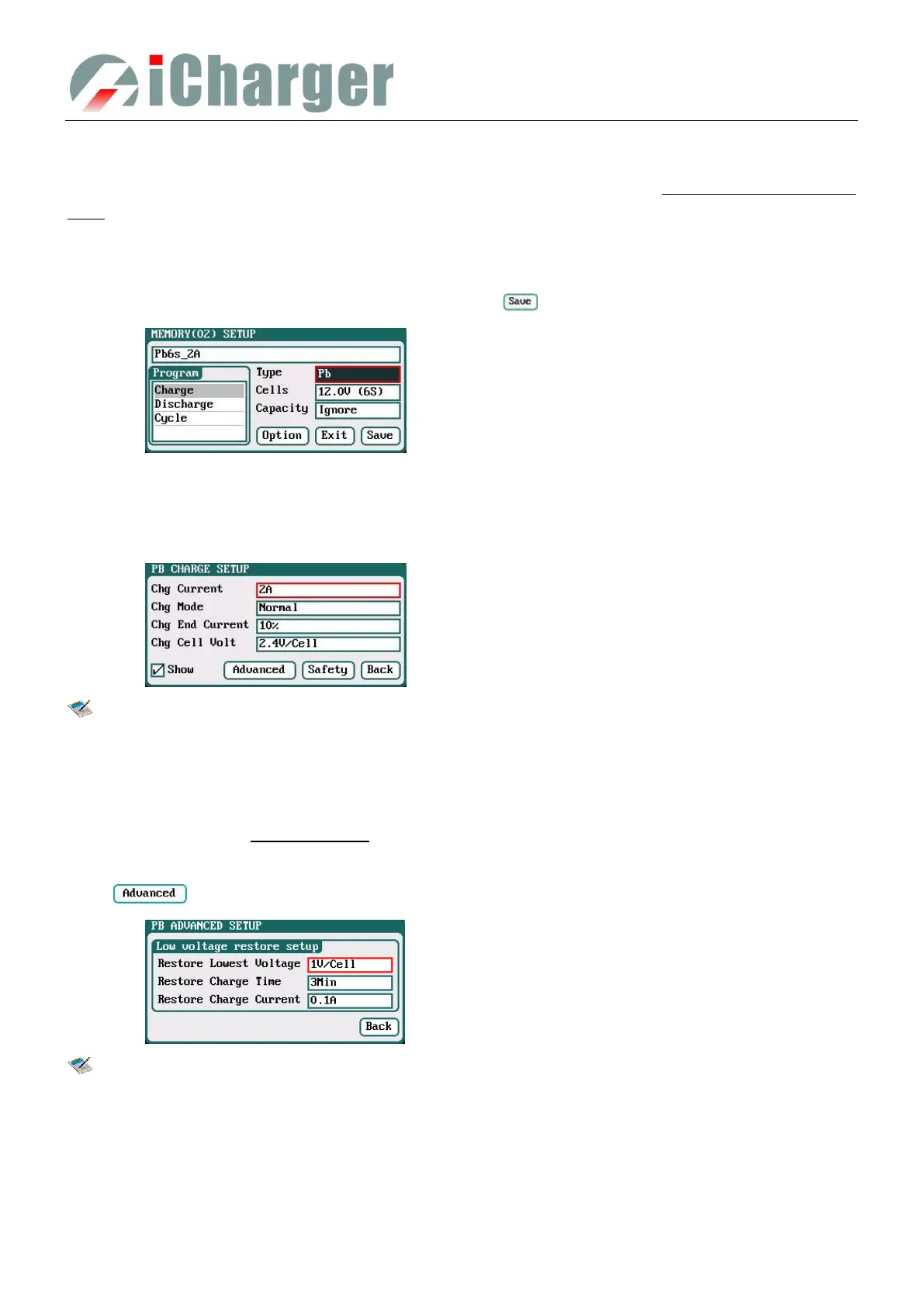 Pb Battery Charge Advanced Setup