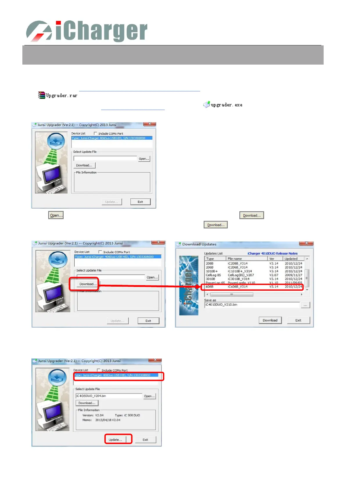 ① Go to the website http://www.jun-si.com/UploadFiles/Upgrader.rar to download above VER2.1 version upgrader zip