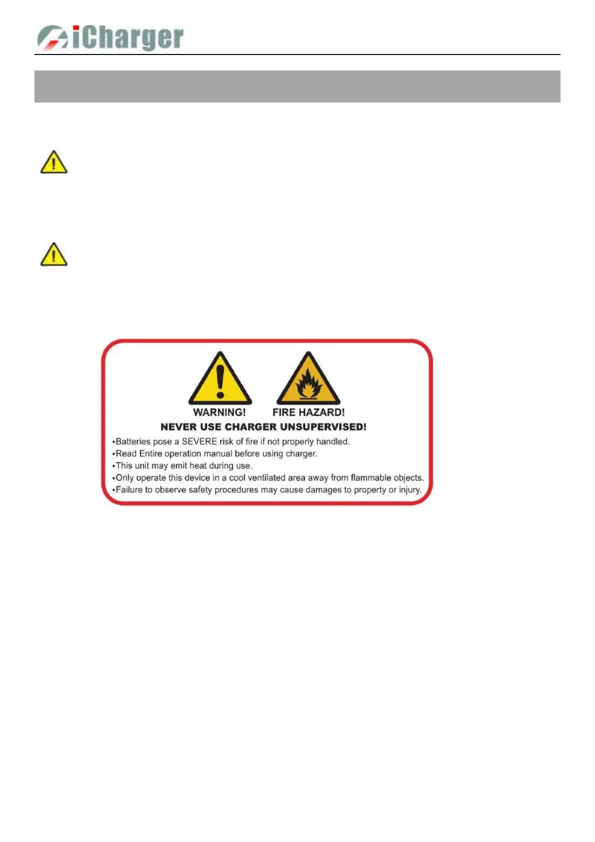 2 Never leave the charger unsupervised when charging or discharging. If you leave, disconnect the battery and switch off