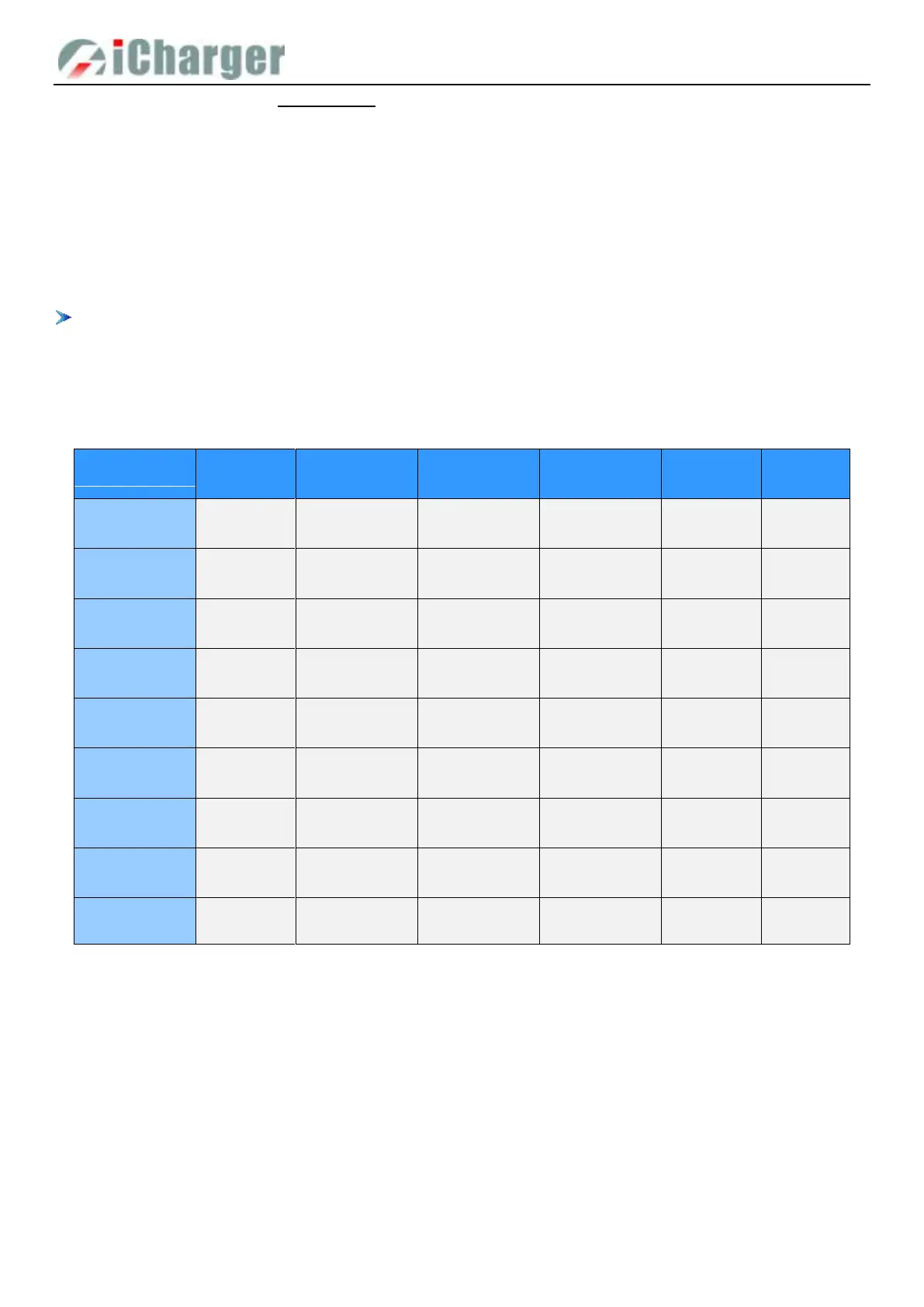 The following form shows specific range of different batteries: