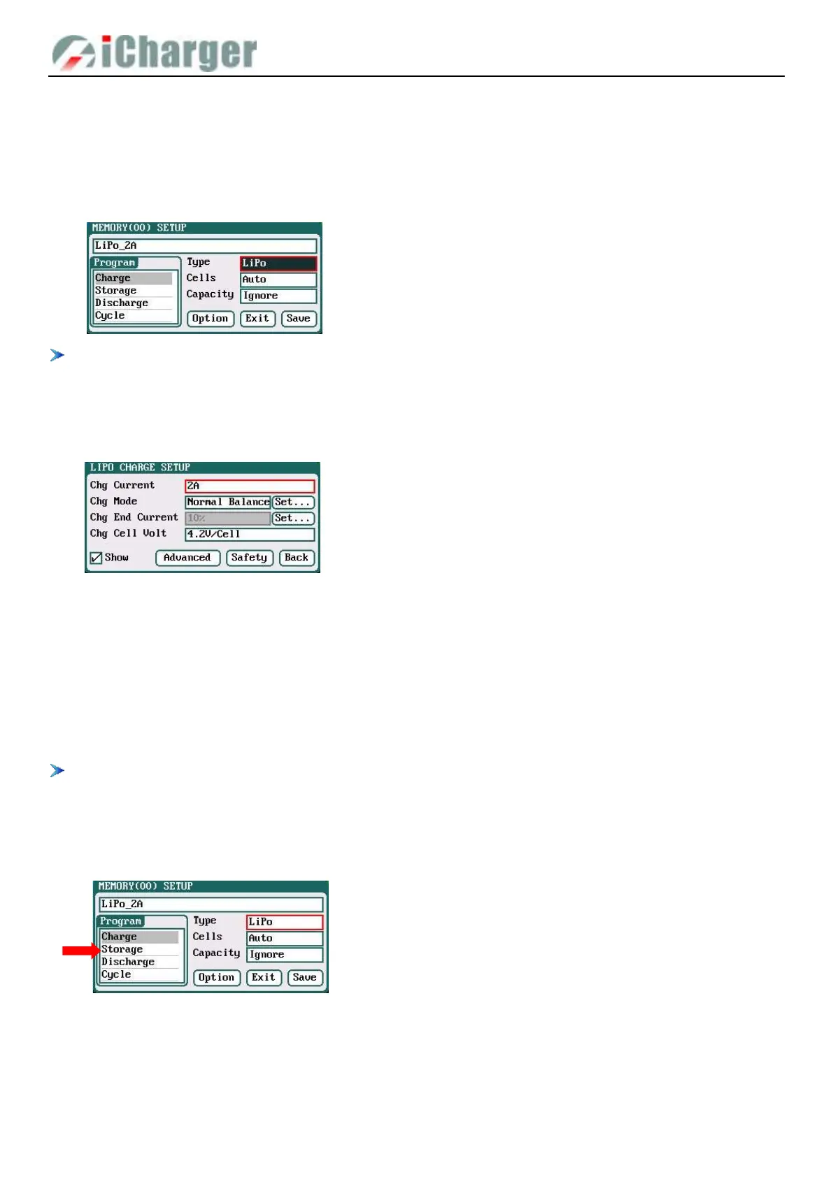 After adding a program, it will switch to LiPo/LiIo/LiFe/LiHV/LTO/NiZn/User battery in Type option on the MEMORY
