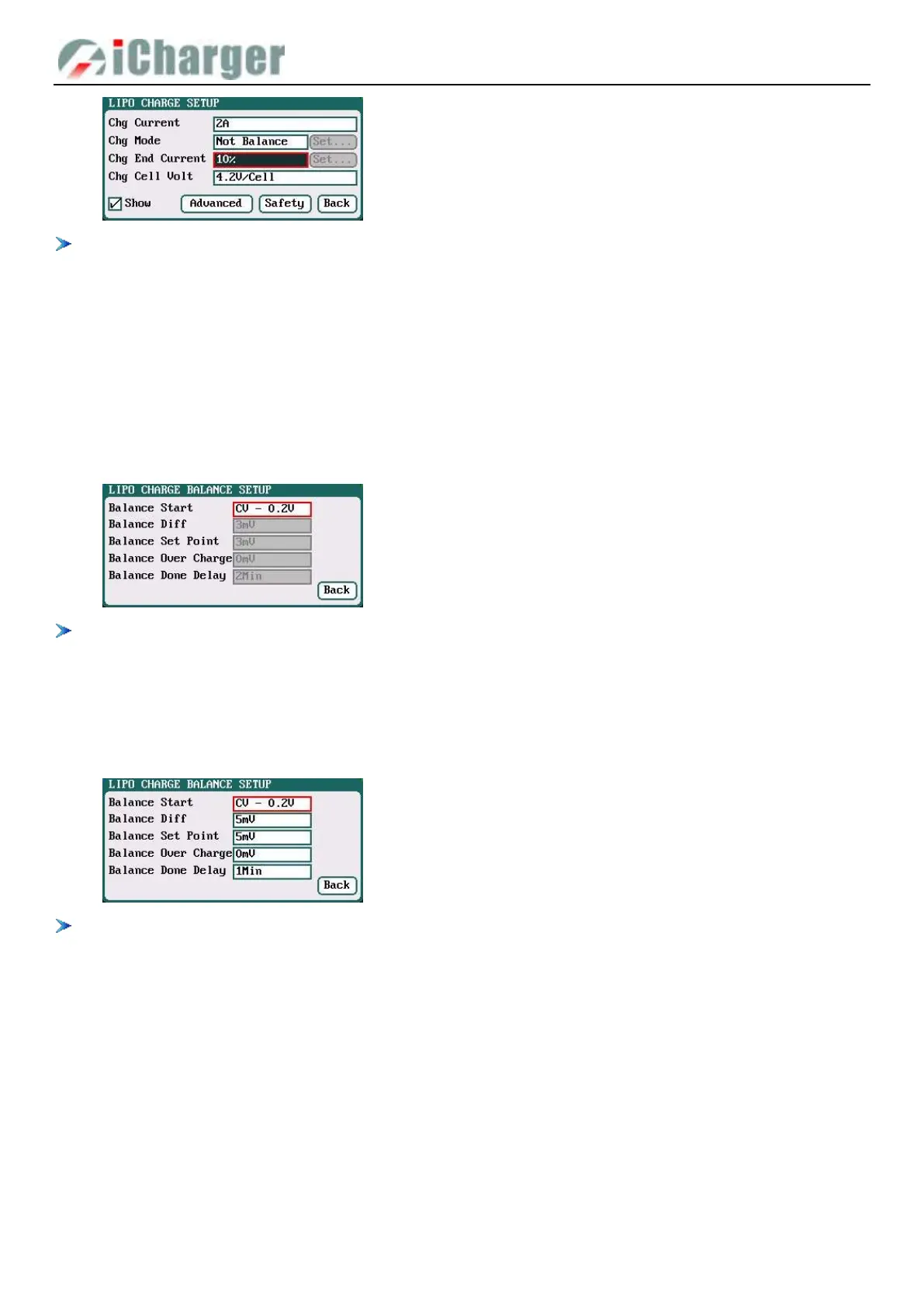 When switch to User Balance mode on Chg Mode; the Balance Diff, Balance Set Point, Balance Over Charge and