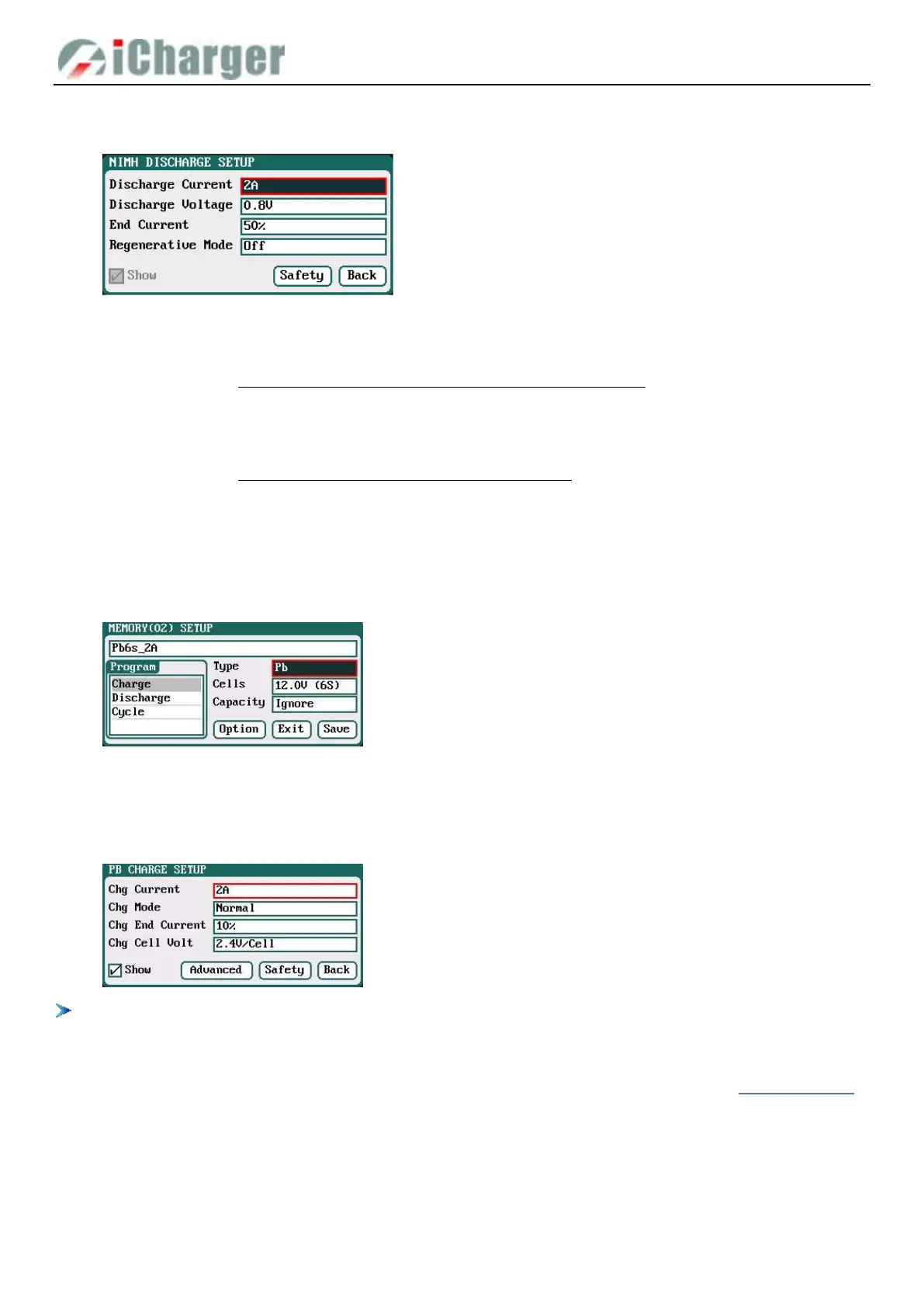 Select Program→Charge to enter PB CHARGE SETUP interface.