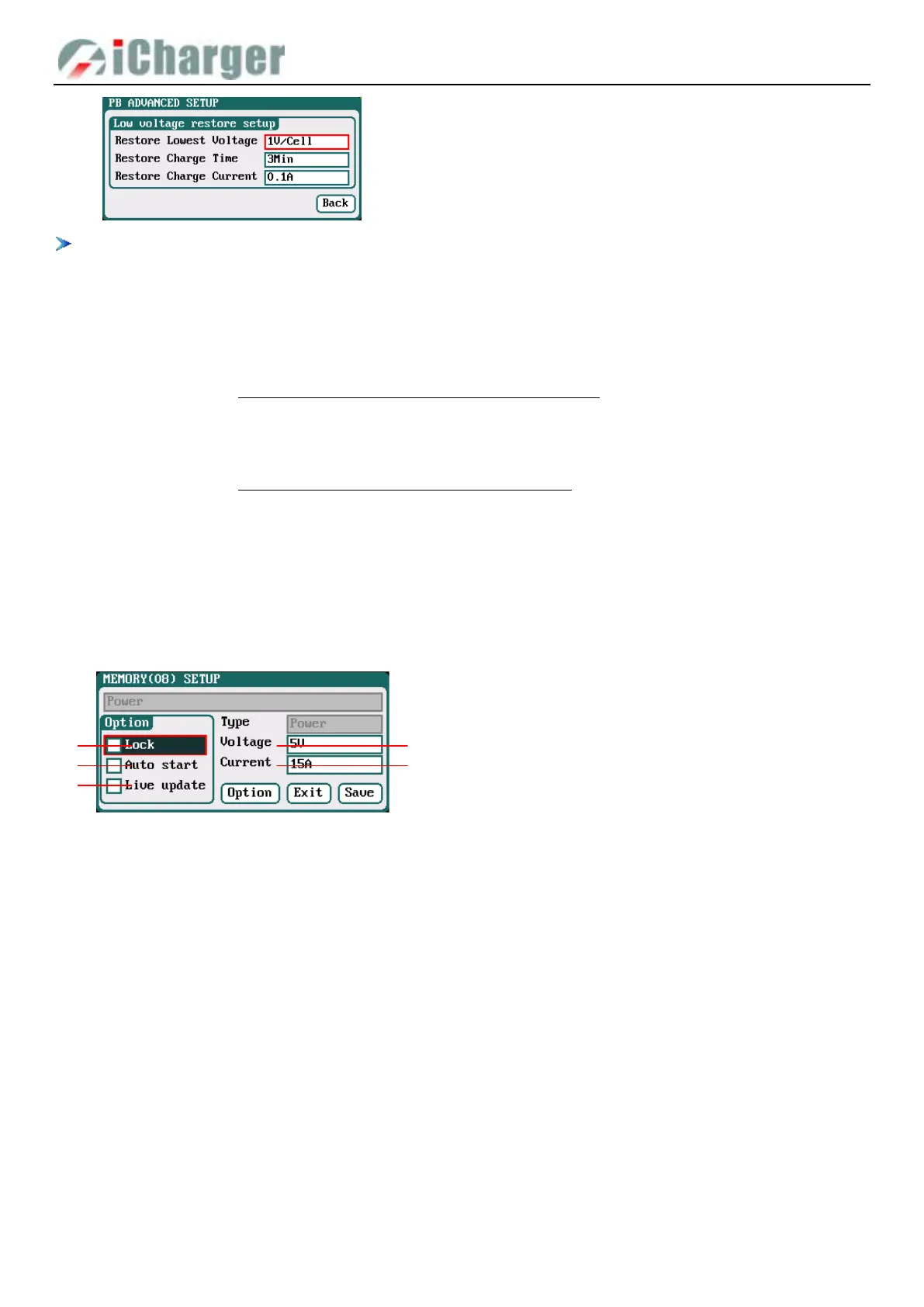 Voltage, if larger, it will pre-charge the battery with Restore Charge Current, if within the setting Restore Charge Time,