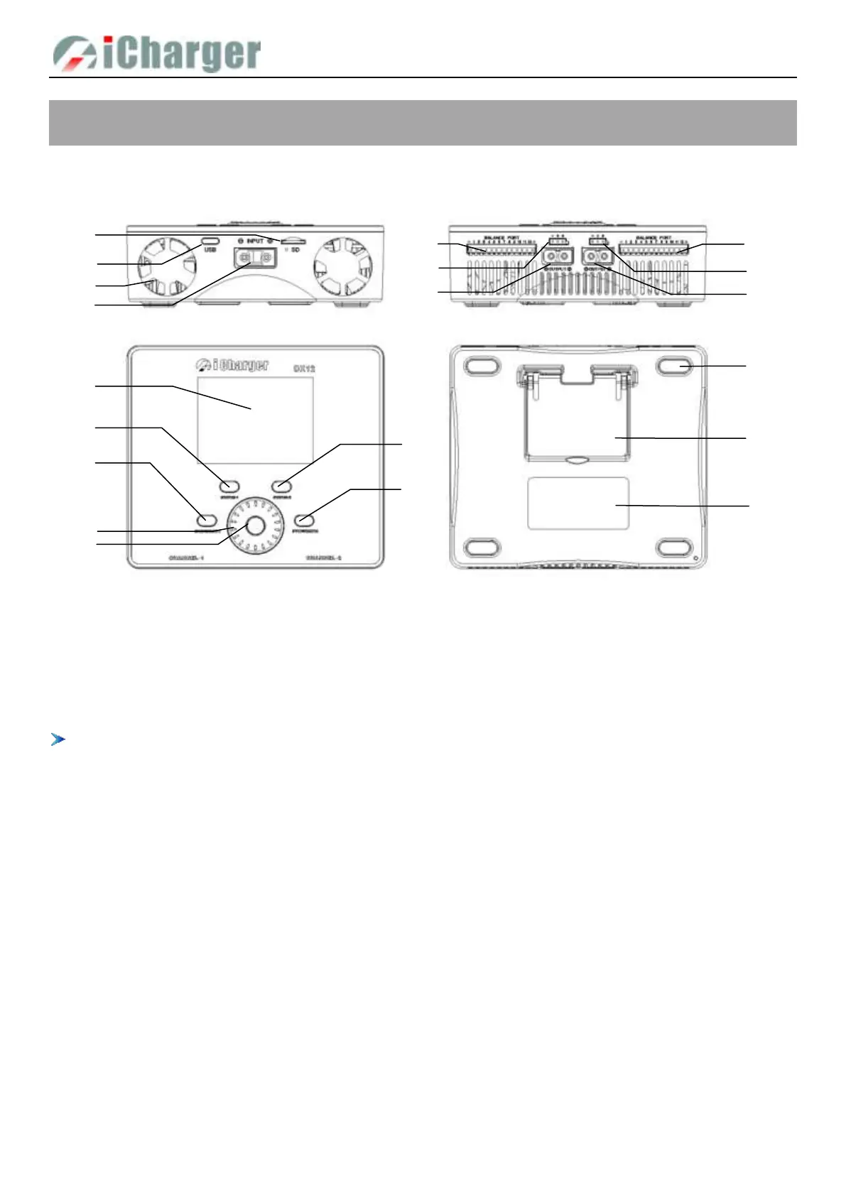 iCharger DX12 - Device Introduction; Parts & Interface Introduction