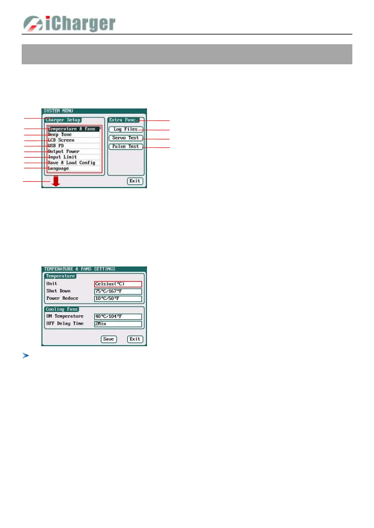 Select SYSTEM MENU→Temperature&Fans to enter the setup interface