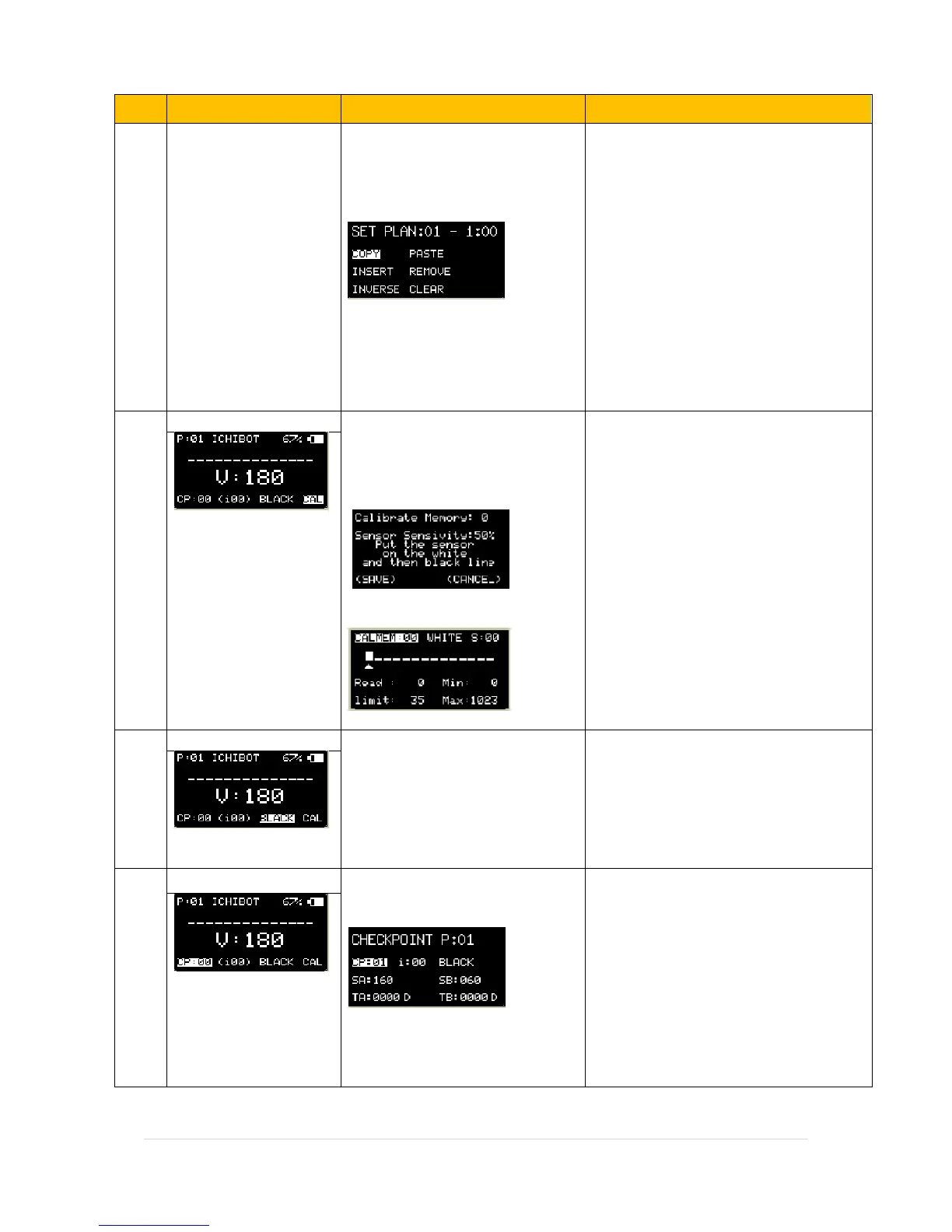 Sensor calibration menu. to adjust