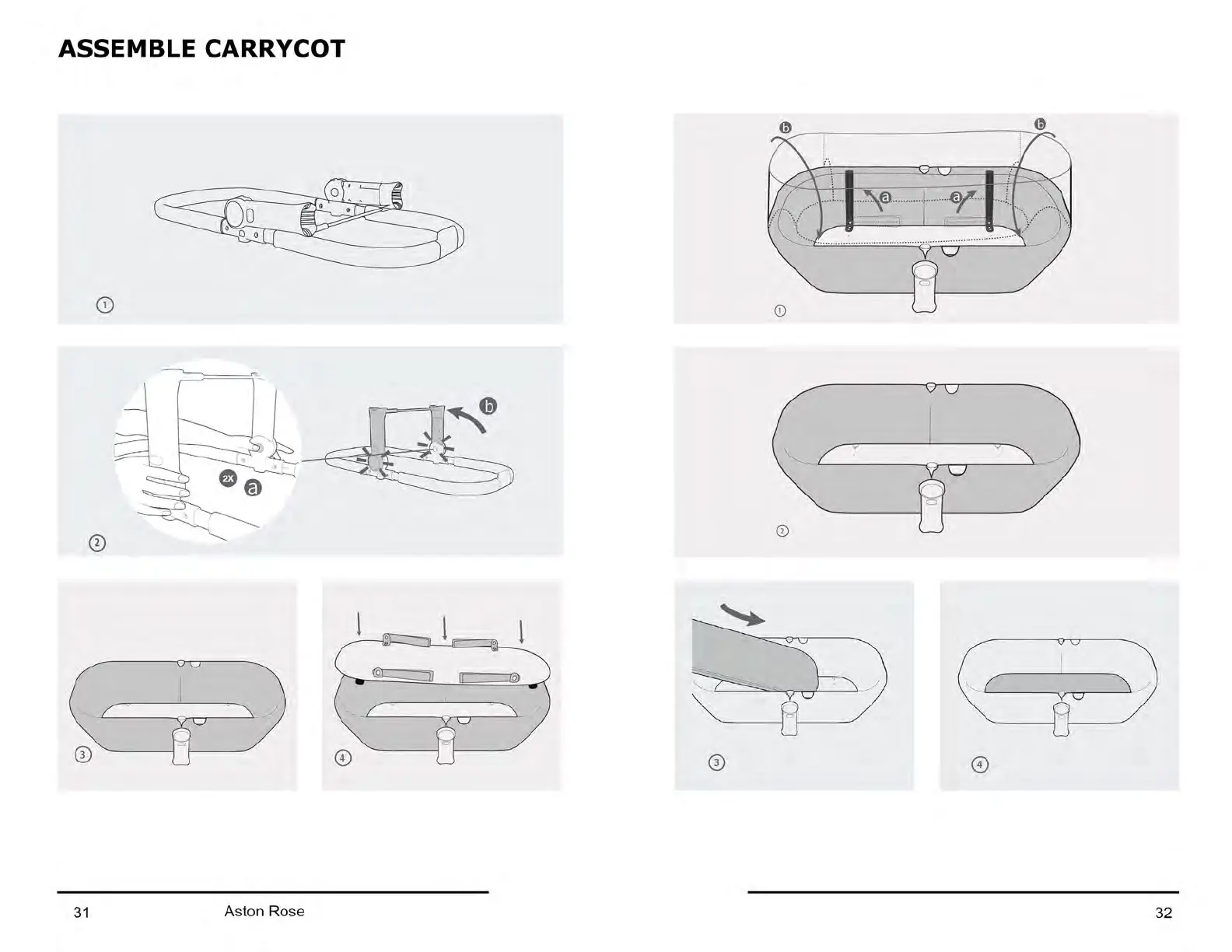 Ickle Bubba ASTON ROSE - ASSEMBLE CARRYCOT; Carrycot Assembly Steps