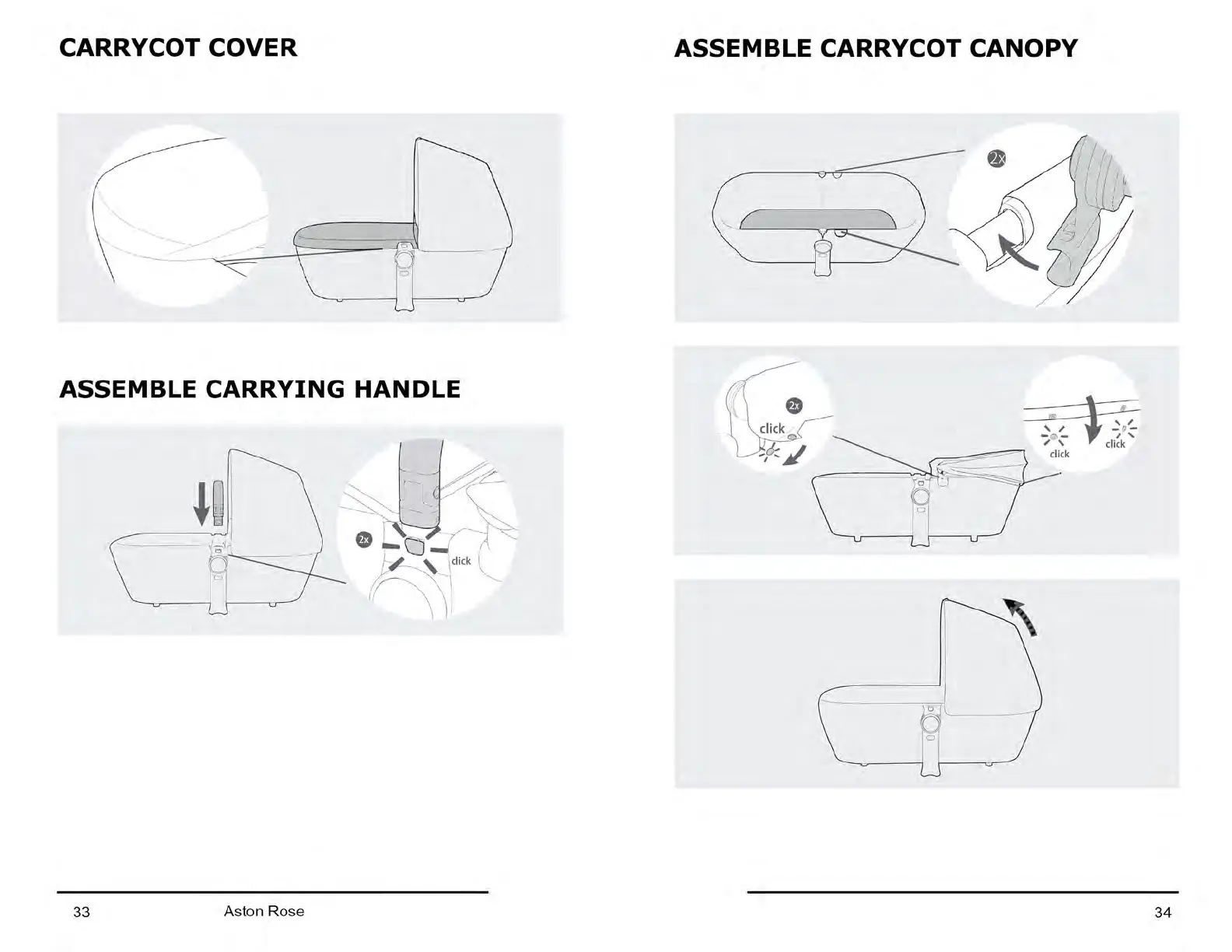 Ickle Bubba ASTON ROSE - CARRYCOT COMPONENTS ASSEMBLY; Carrycot Cover Attachment; Carrycot Handle Assembly; Carrycot Canopy Assembly