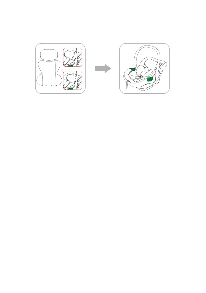 Place the inner cushion in the infant carrier and guide