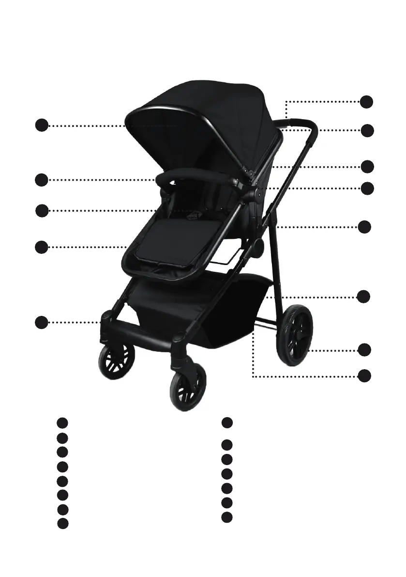 Ickle Bubba Moon - Stroller Components; Key Components Identification; Seat and Carrycot Features; Frame and Mobility Parts